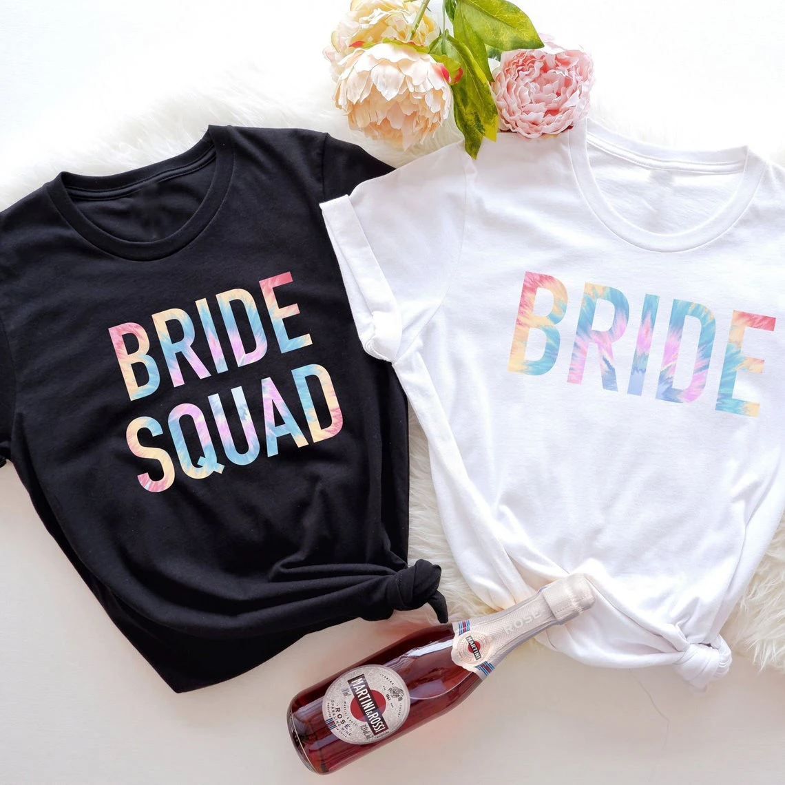 Футболка с принтом Tie Dye для отряда невесты и невесты, Женская футболка для девичвечерние, Ретро рубашка для платья невесты Баха, Модный женский топ в подарок на свадьбу