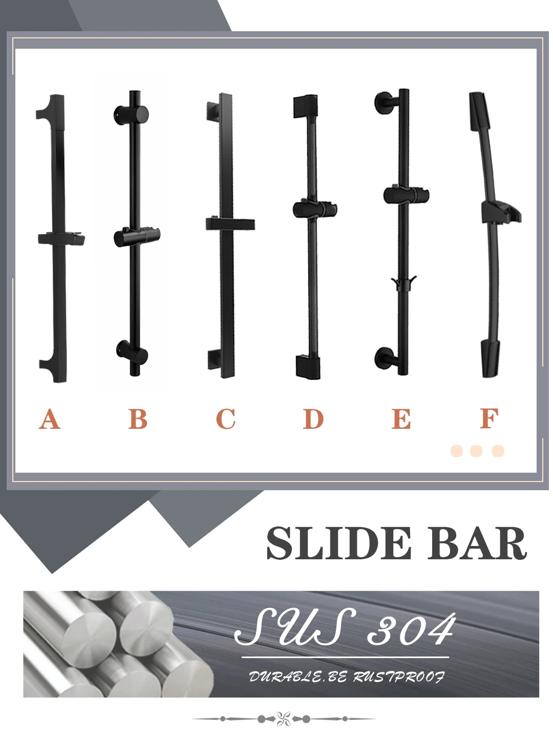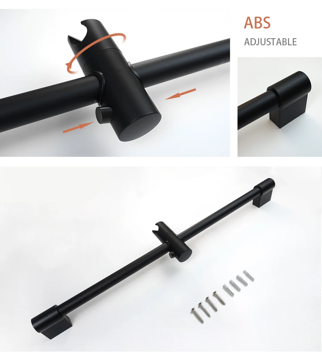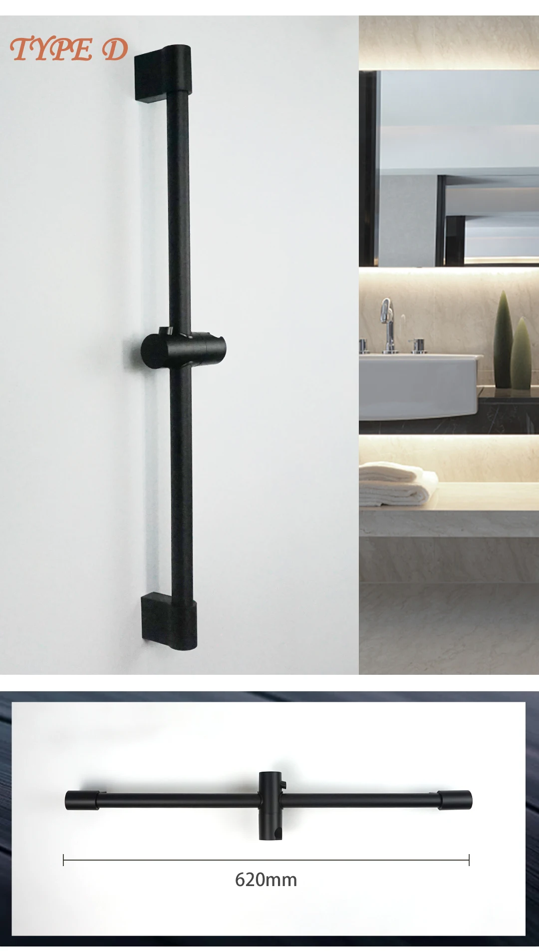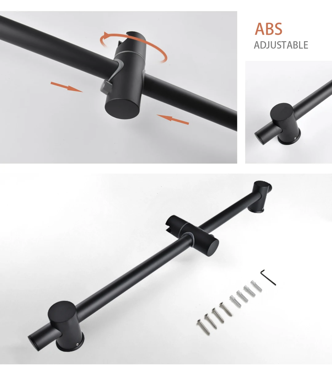 Матовая черная раздвижная душевая стойка для ванной комнаты, душевая стойка, настенный стержень с регулируемым кронштейном, Круглый квадратный скользящий стержень