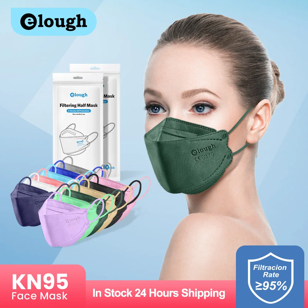 Elough Fish маска KN95, цвета масок FFP2 для взрослых, 4-слойная, г...