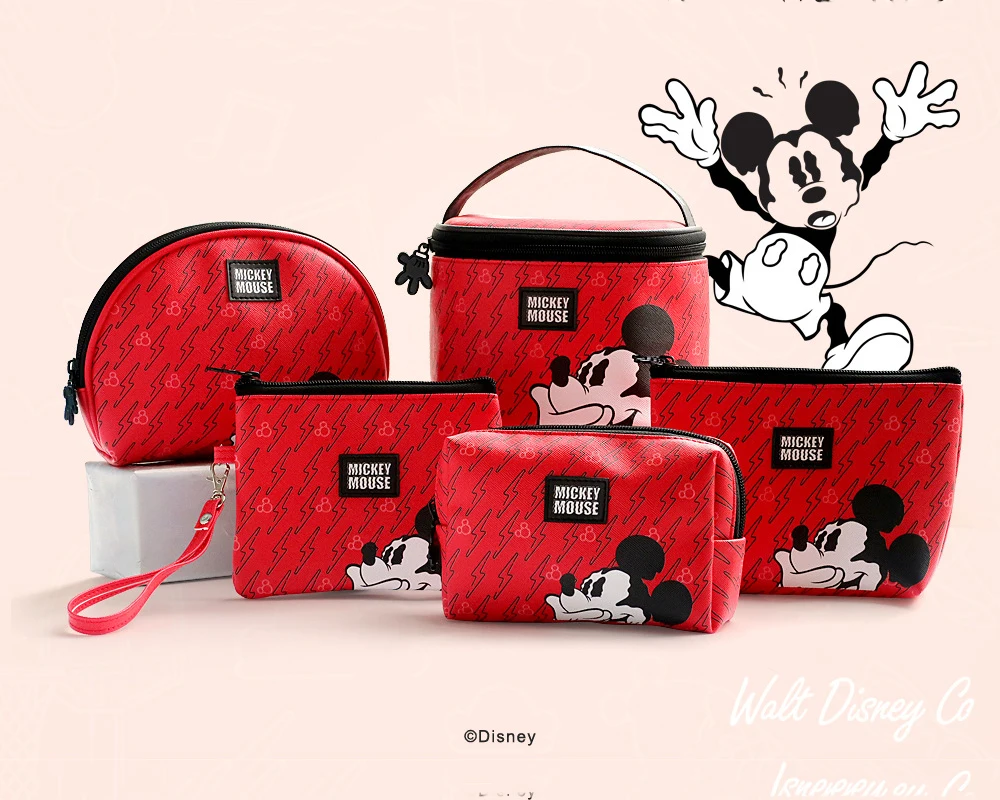Оригинальная женская косметичка Disney, многофункциональная красная дорожная сумка-ведро из ПВХ для женщин, кошелек для мелочи
