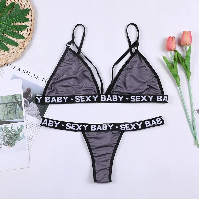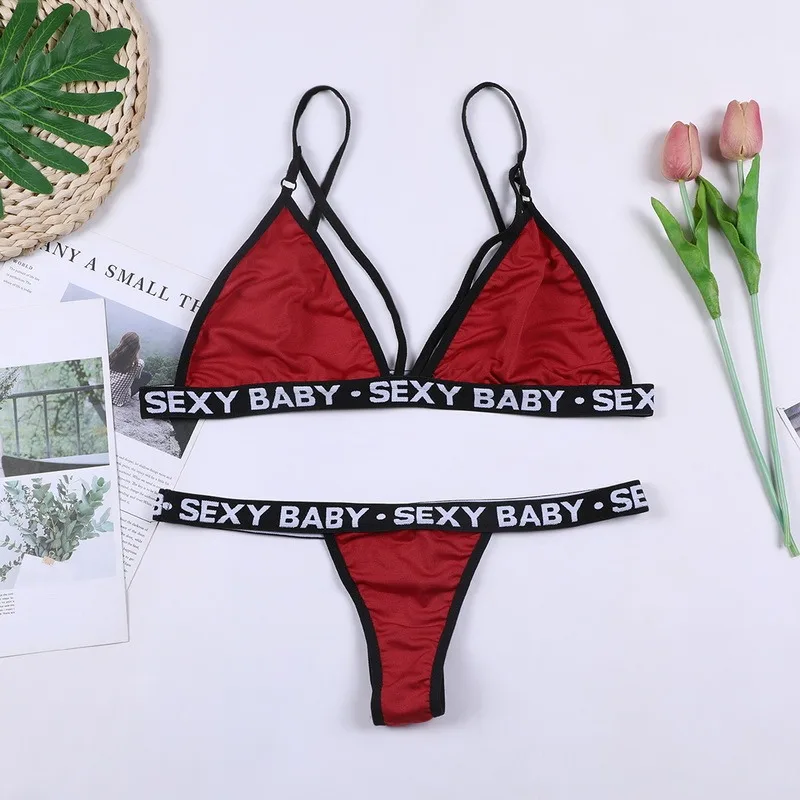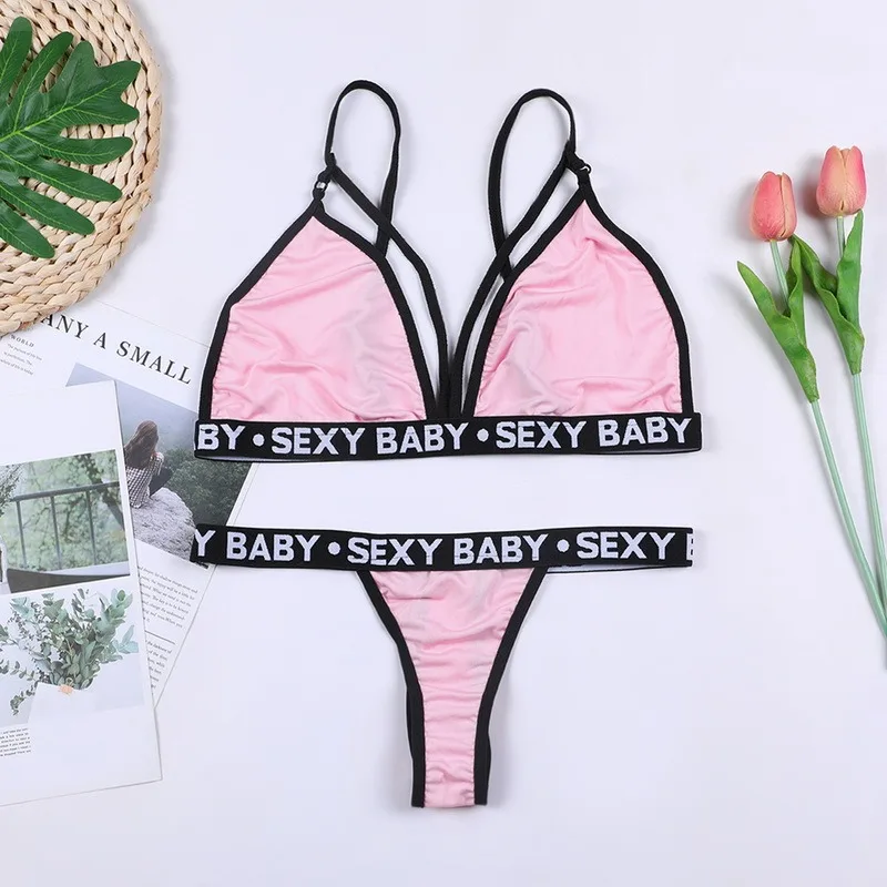 Комплект женского спортивного нижнего белья из 2 предметов, бюстгальтер пуш-ап с буквами и трусики-стринги, 2021
