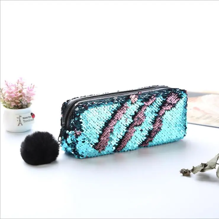 Новинка, модные сумки для макияжа с блестками для женщин, двусторонний двойной цвет, блестящая косметичка, Дамский Чехол-карандаш на молнии