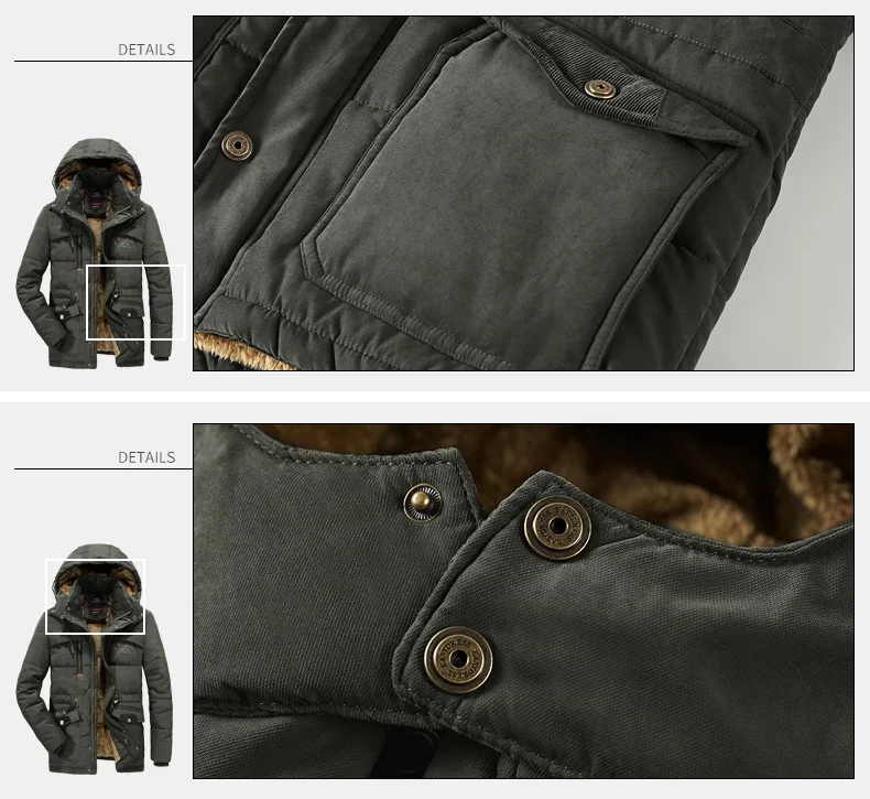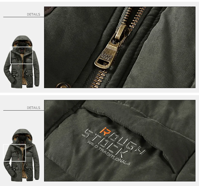 Мужские зимние куртки с карманами повседневные Теплая парка Толстая...