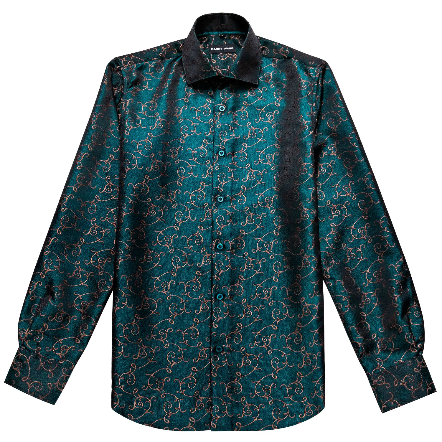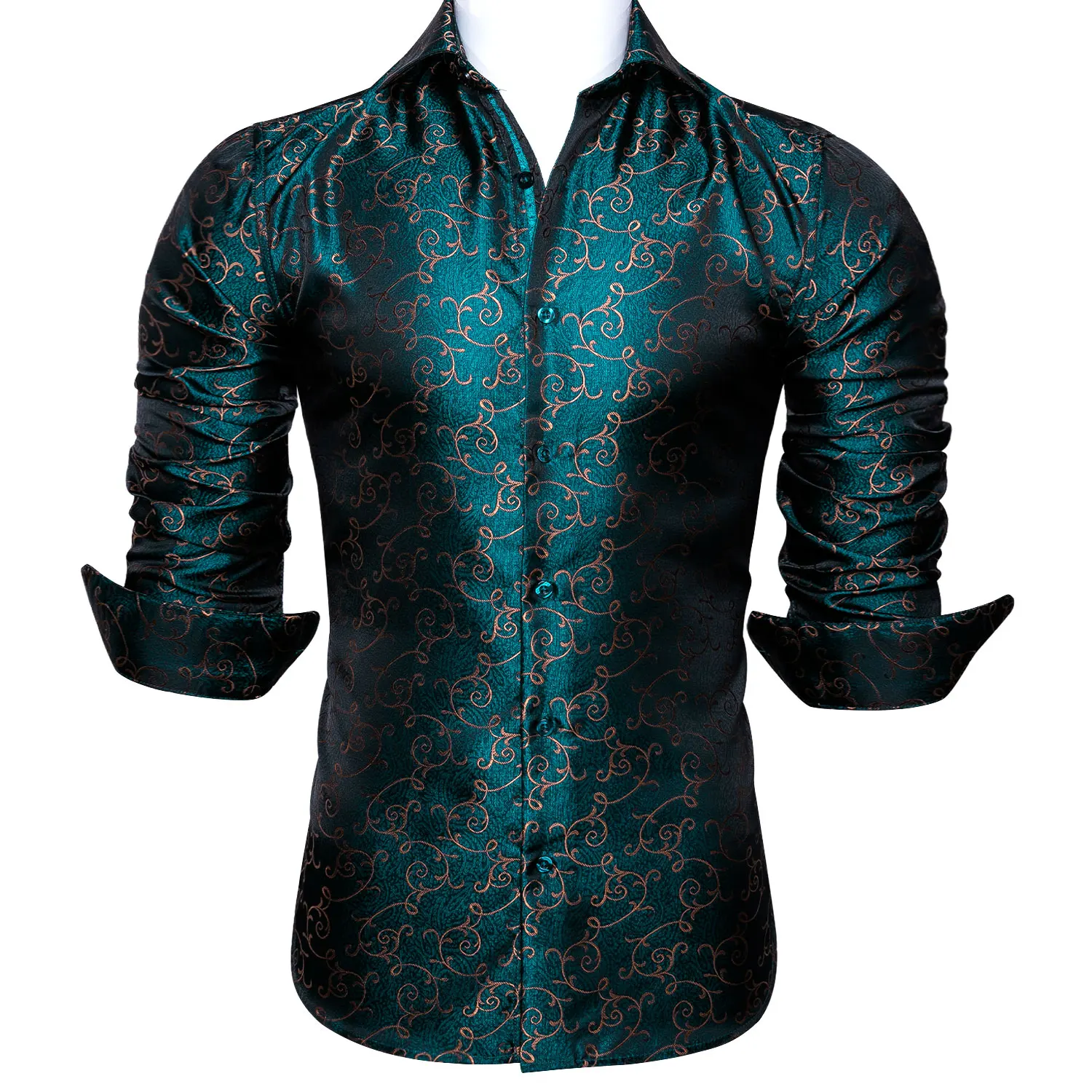Мужские шелковые рубашки с цветочным принтом Barry.Wang, темно-бирюзовая Повседневная рубашка с длинным рукавом и цветочным принтом, дизайнерская приталенная рубашка, BCY-0023