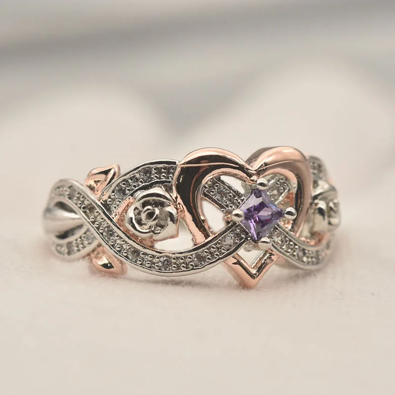 Huitan 2021 трендовые двухцветные любовные кольца для женщин Роскошные модные аксессуары для девочек кольца вечерние в форме сердца эффектные ювелирные изделия Прямая поставка