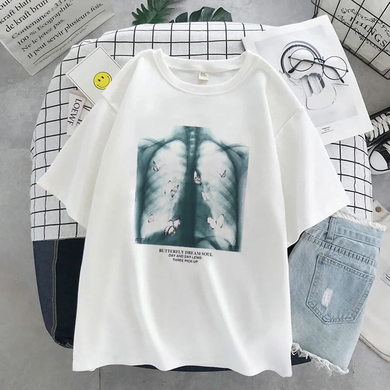 Футболка женская оверсайз с забавным рисунком бабочки, милая рубашка с круглым вырезом и коротким рукавом в стиле Харадзюку, топ в ретро стиле