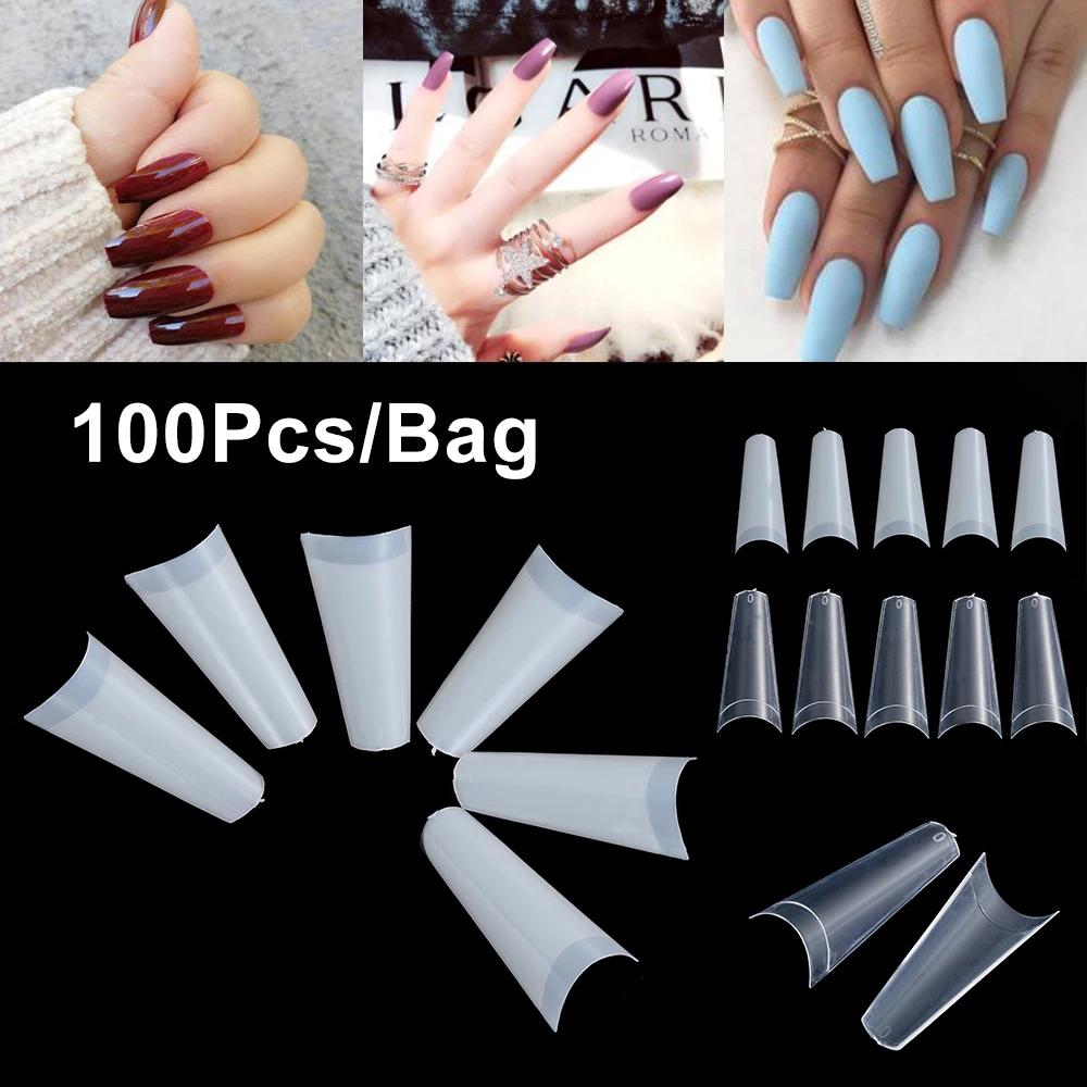100 шт.коркор. полное покрытие, искусственные ногти, накладные ногти, длинные балерины, прозрачныенатуральныебелые, накладные ногти, художественные накладные ногти, инструмент для маникюра
