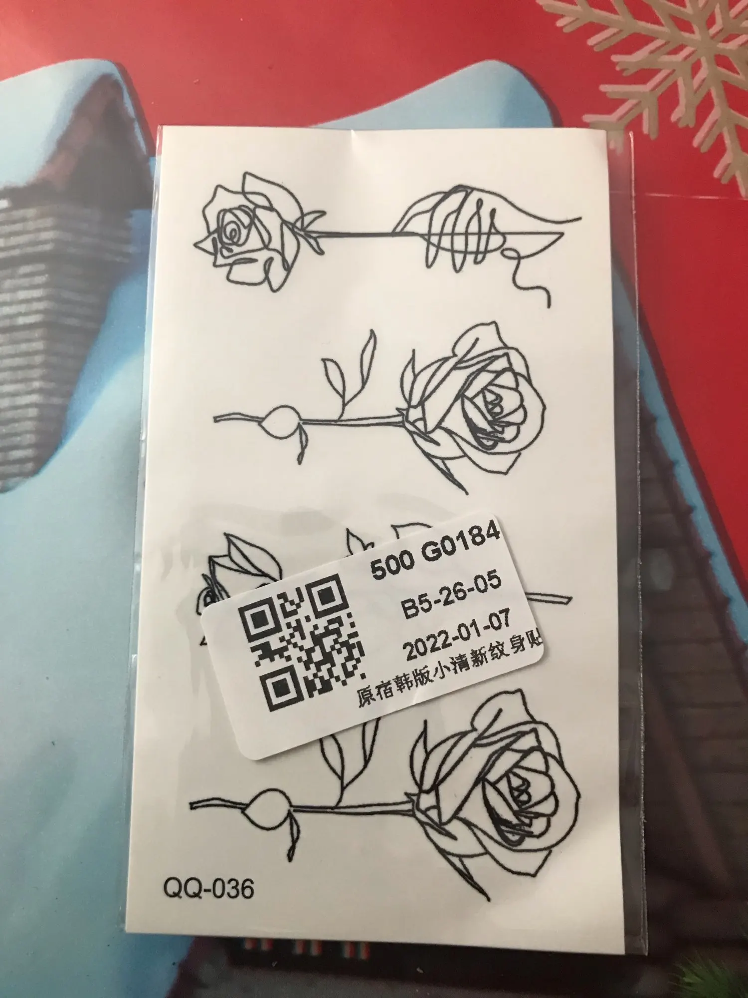 Очень хорошие татуировки. Почти не стираются . На руке держится уже неделю . Они маленькие . На руке смотрятся отлично и красиво . Быстрая доставка в течении 2-х недель . Буду заказывать ещё. 4 штуки как раз хватит . Но лучше брать сразу 2 упаковки