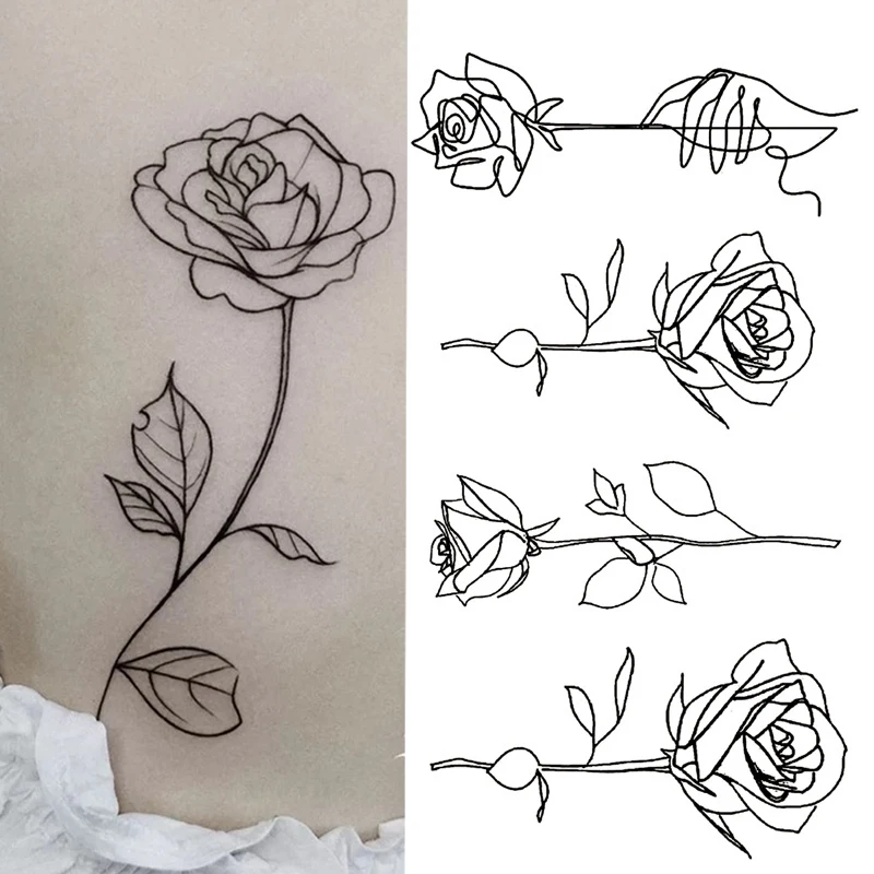 Временные тату-наклейки для мужчин и женщин, водостойкие черные тату, цветок, роза, Бабочка, переводка воды, боди-арт, временные 1 шт.
