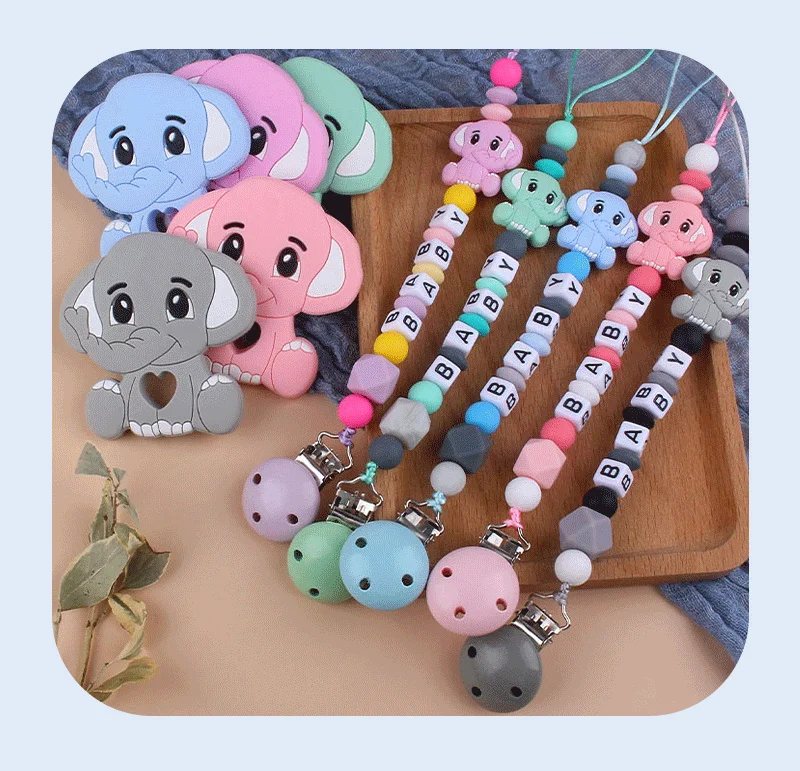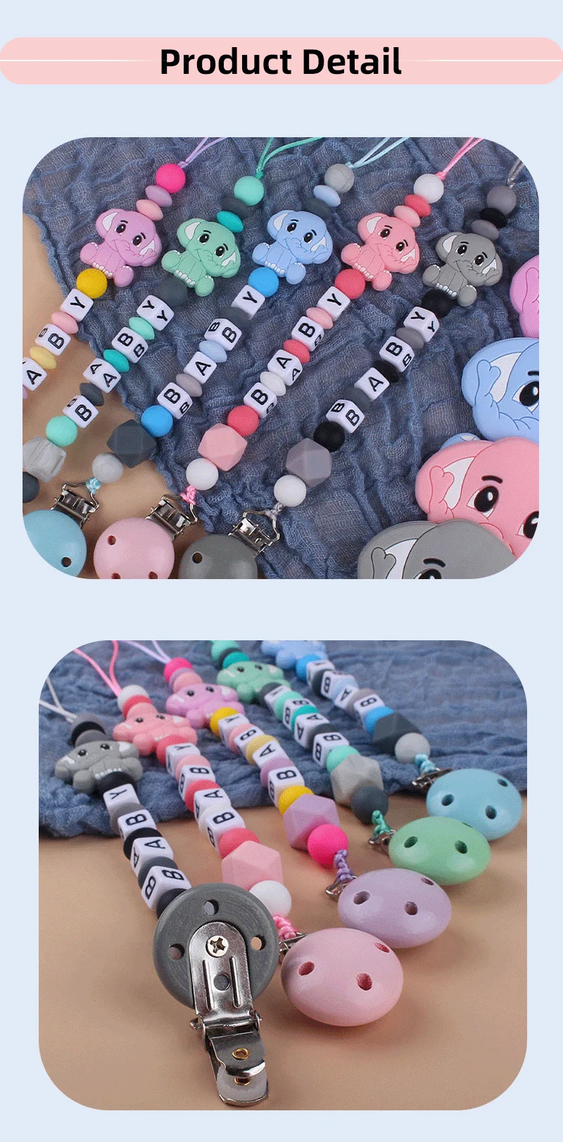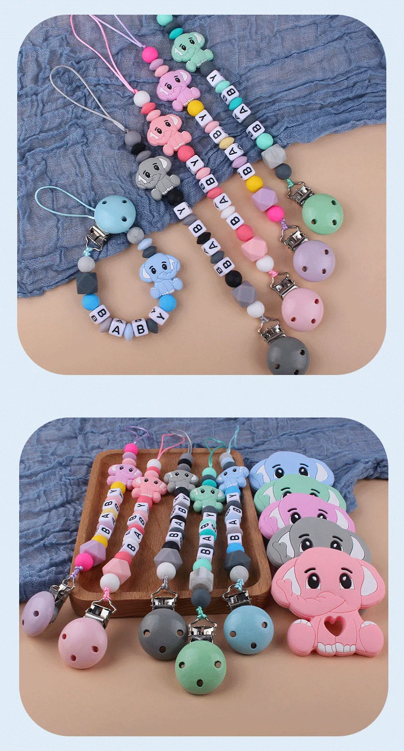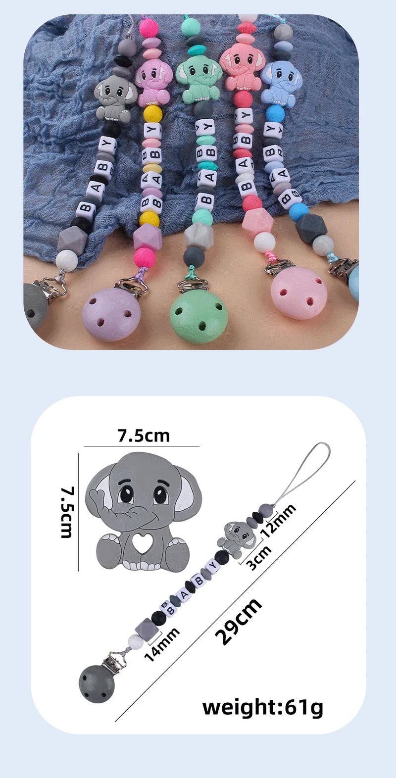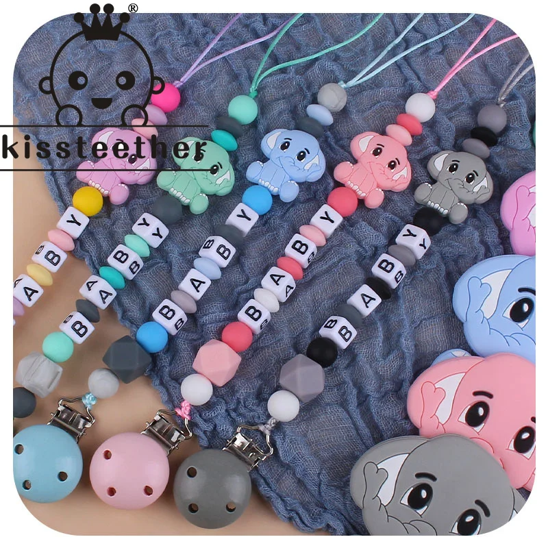 Kissteether Соска с именем под заказ для младенца, зажимы, цепочка в виде слона, искусственная игрушка, держатель, цепочка для соски