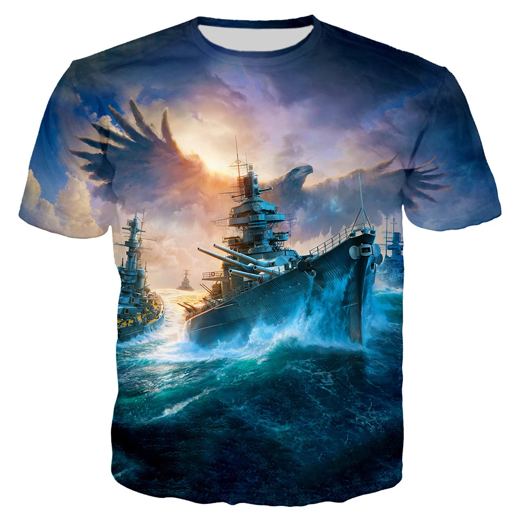 Футболка оверсайз с 3D принтом Warship для мужчин и женщин, Повседн...
