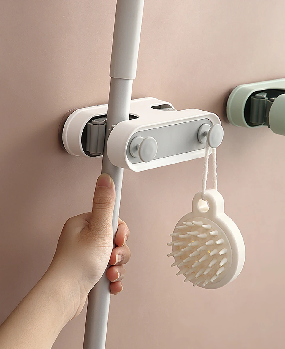 Настенный бесшовный зажим для швабры, двойная карточка с крючком, метла, бытовой инструмент