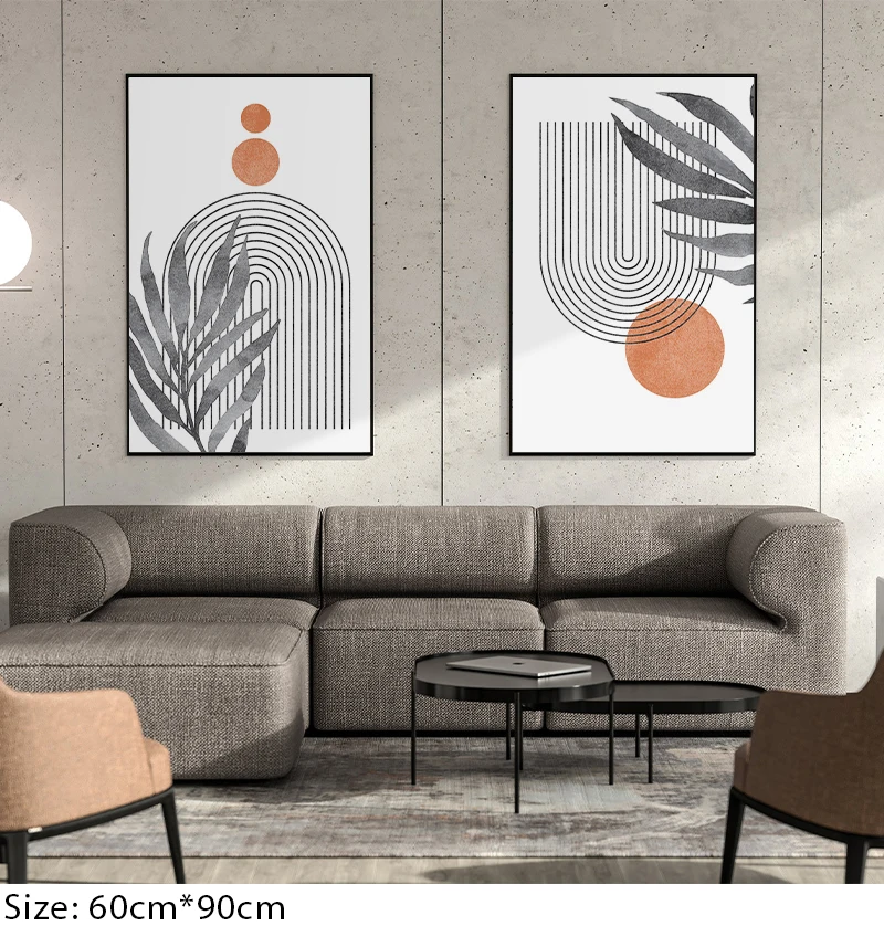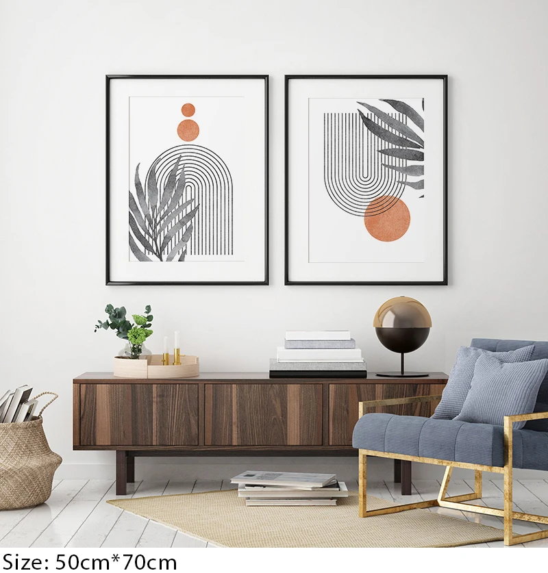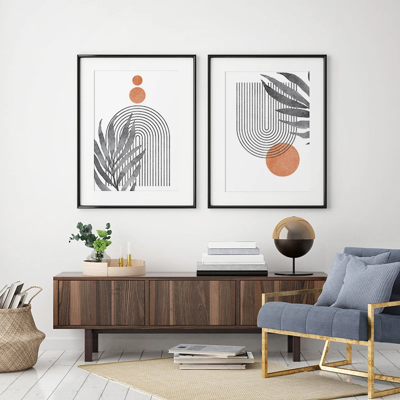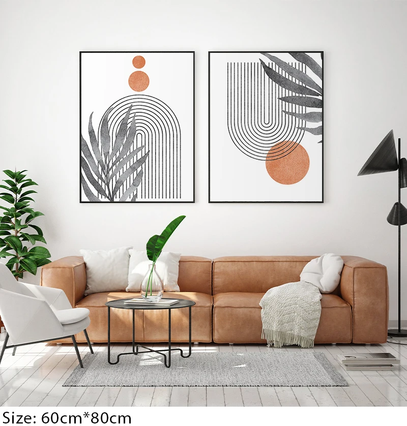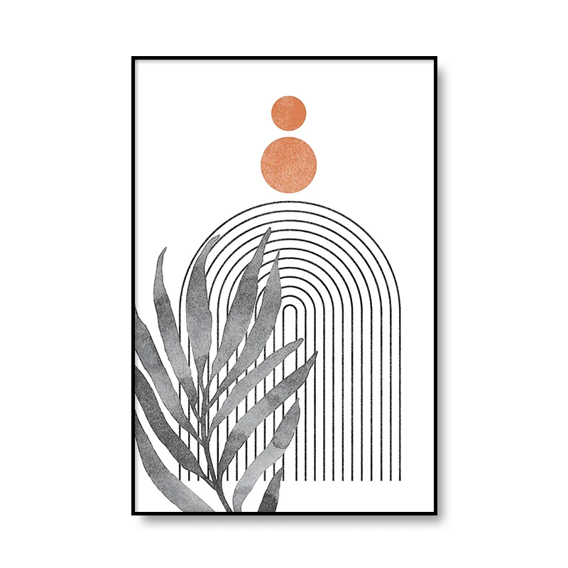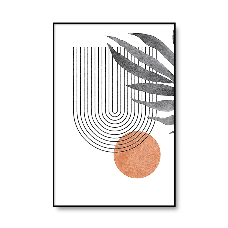 Абстрактная Минималистичная Геометрическая линия в стиле бохо, холст с изображением солнца и листьев, настенные художественные картины, плакаты с принтом для интерьера гостиной, домашний декор