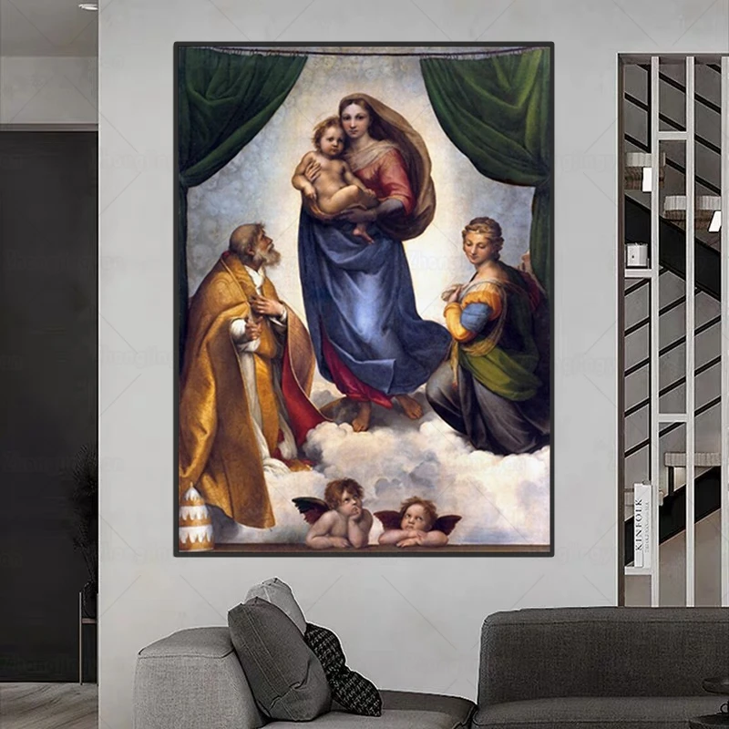 Рафаэль Сикстинская мадонна, знаменитая картина, Мадонна плакат с изображением Иисуса года и печать, настенные картины для декора гостиной, Куадрос