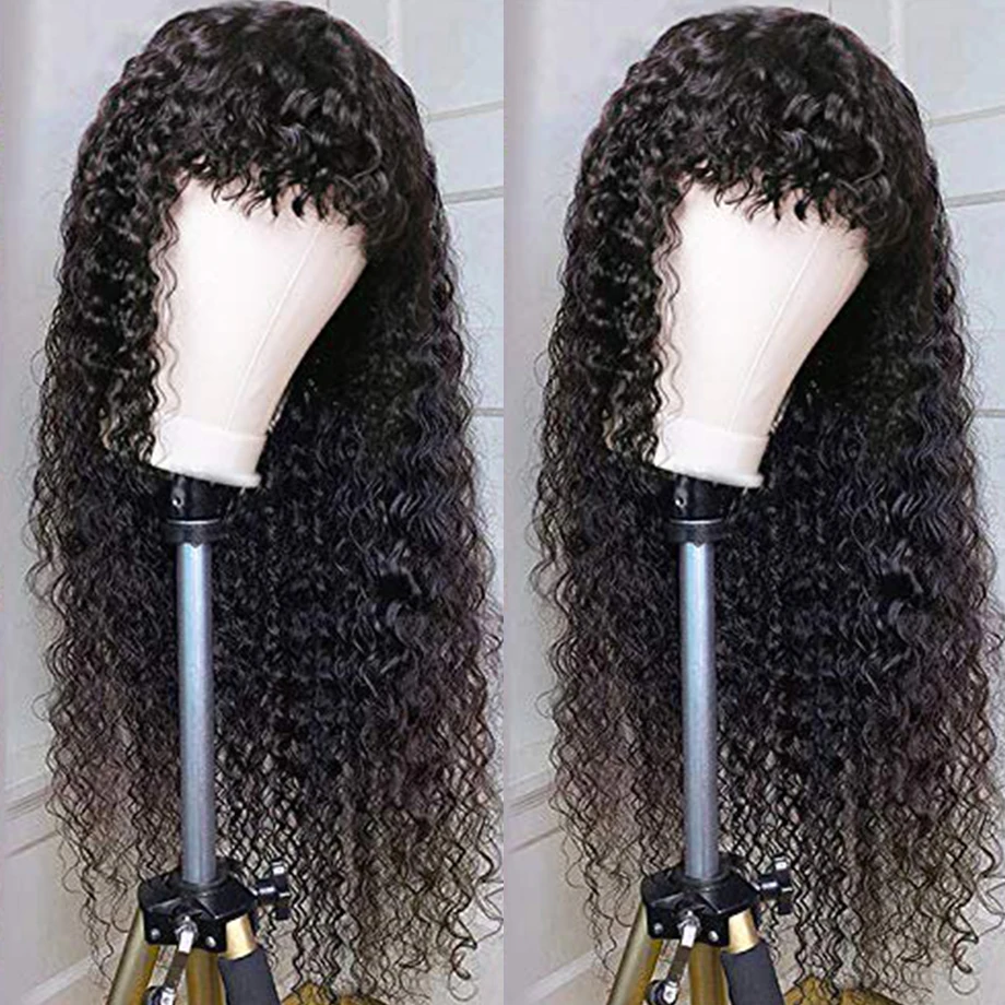 180 плотные вьющиеся 100% человеческие волосы парики с челкой верхняя часть головы парик машинной работы Remy бразильский короткий вьющийся парик для черных женщин