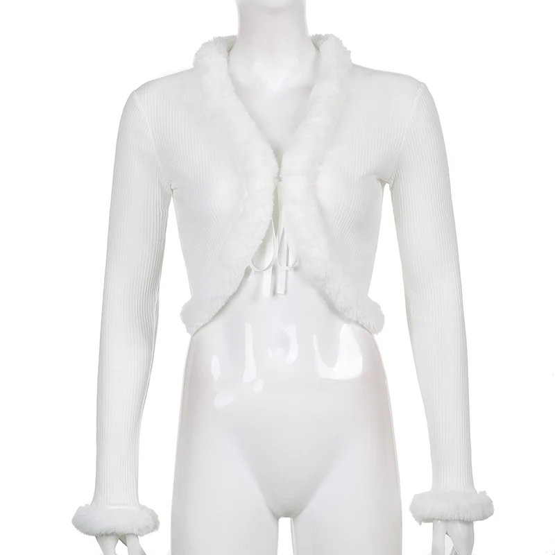 Новинка 2022, пикантный свитер с меховой отделкой на завязках, женс...