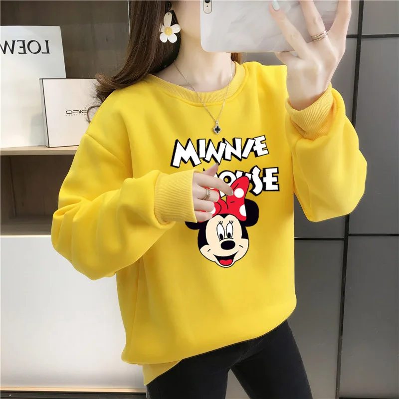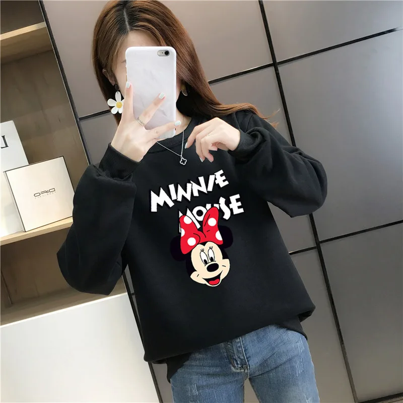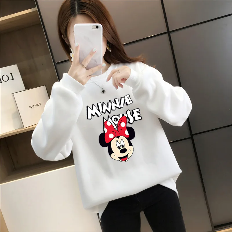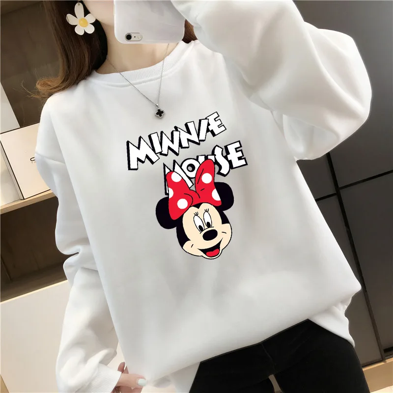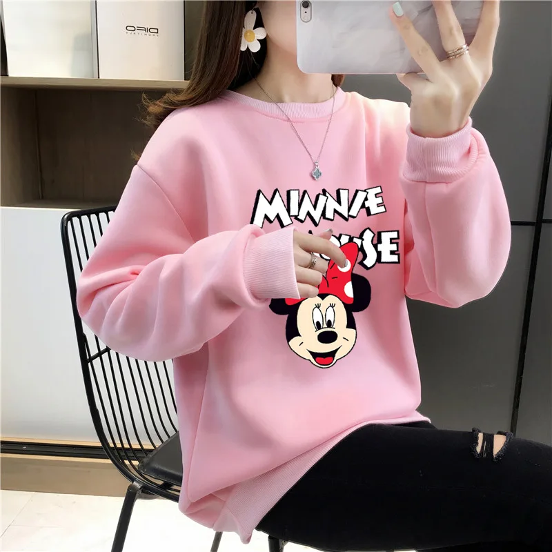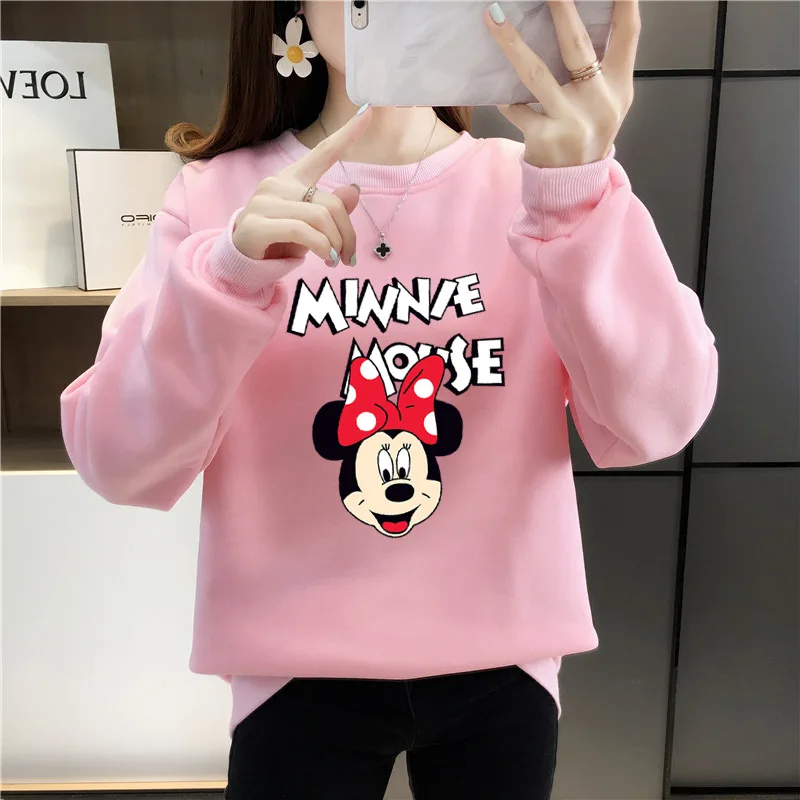 Черная, белая, розовая толстовка с капюшоном и принтом Минни Маус в стиле Харадзюку, 8 цветов, Женская Толстовка на осень и зиму, новинка 2021, толстые толстовки для женщин