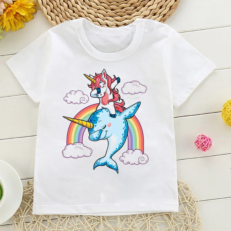 Футболка с мультяшным единорогом, подарок на день рождения, одежда ...