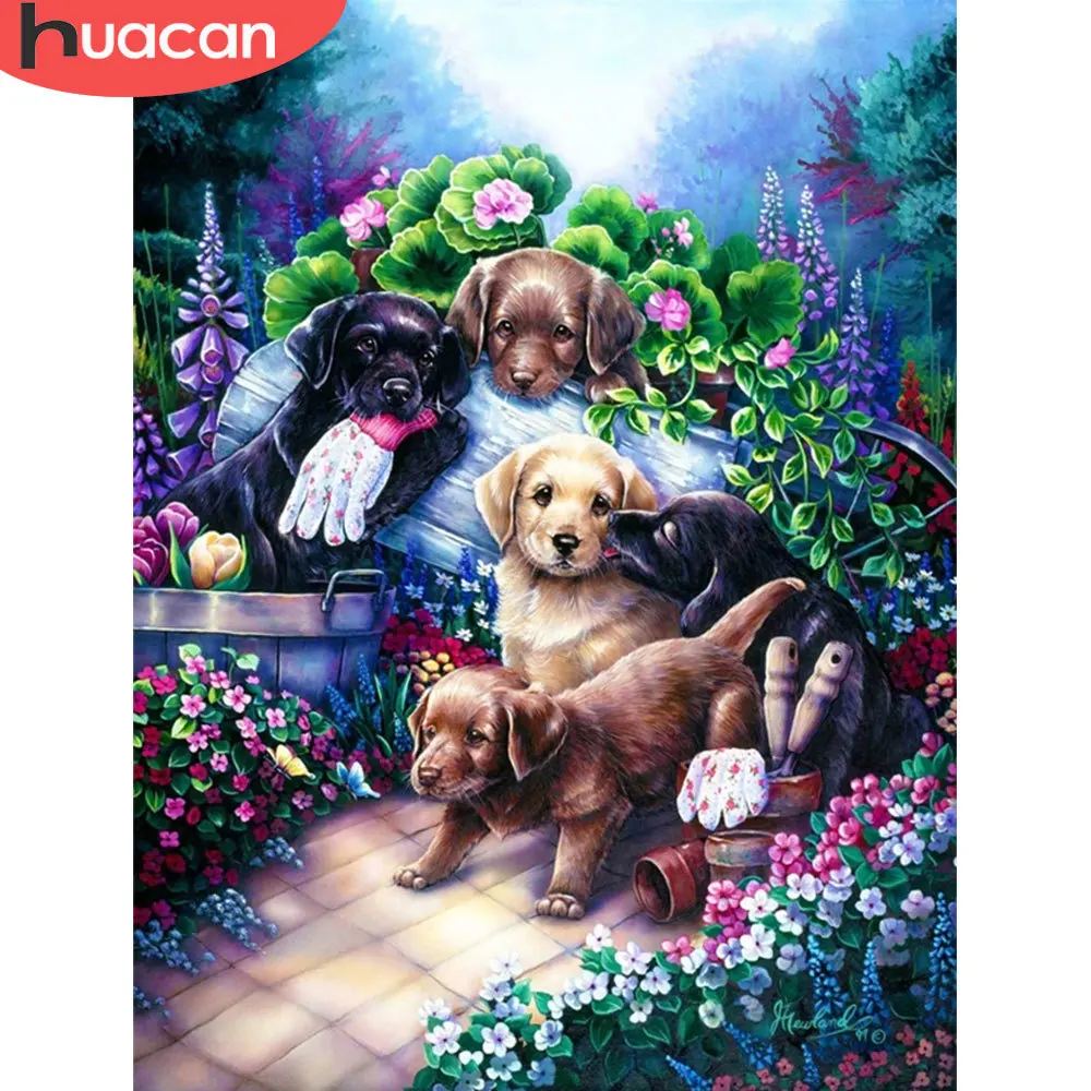 Алмазная 5d картина HUACAN с собакой, мозаика для рукоделия, набор для домашнего декора сделай сам