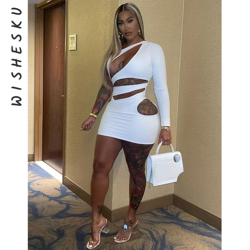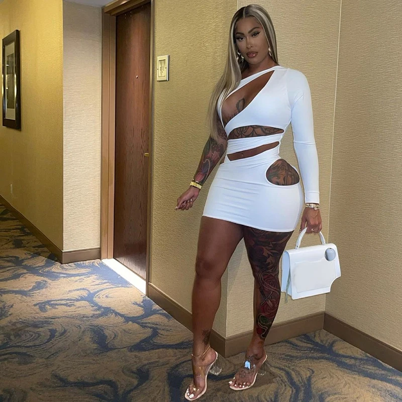 Соблазнительное облегающее платье на одно плечо с вырезом, женские белые мини-платья с одним рукавом и открытой спиной, лето 2021, Клубные наряды для вечеринки