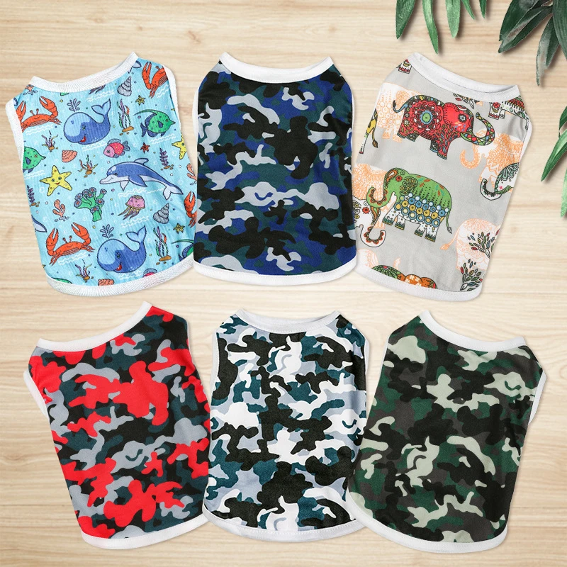 Камуфляжные летние рубашки для собак, повседневный жилет для домашних животных, удобный костюм для маленьких и средних собак, чихуахуа, футболка со щенком, одежда