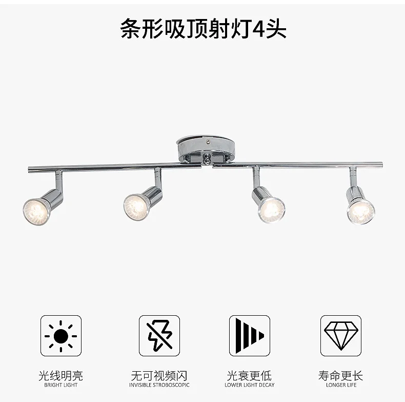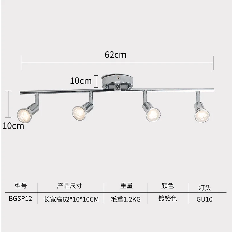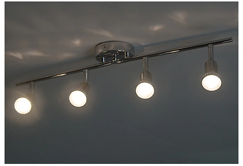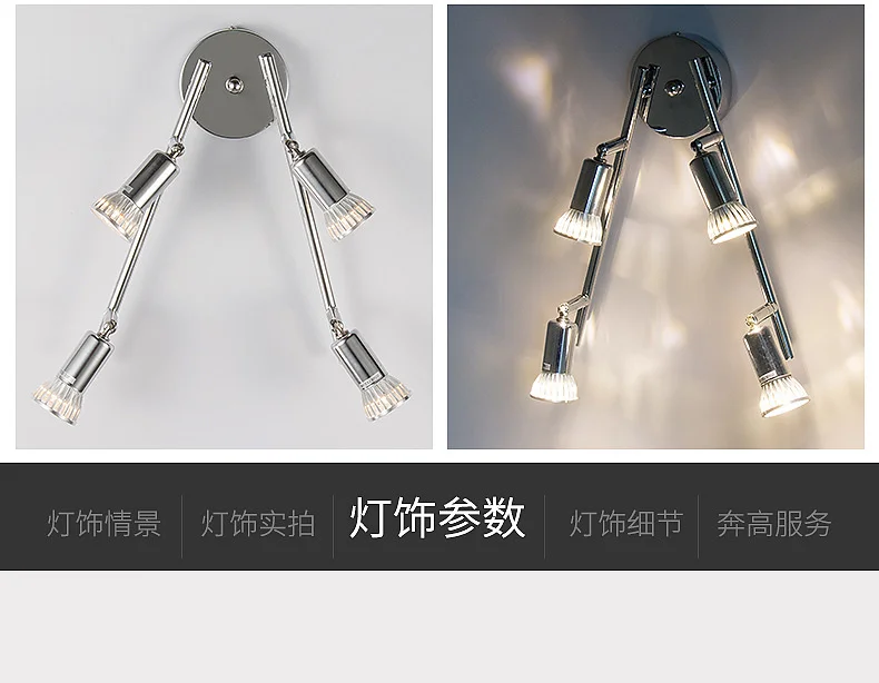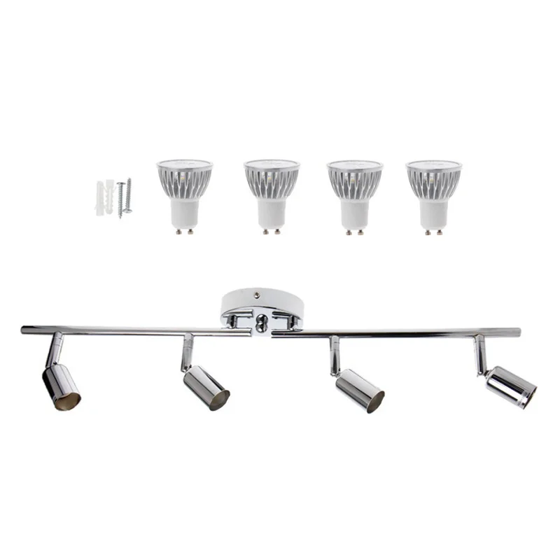 Хромированные Точечные светильники GU10 с 4 насадками, светодиодный потолочный светильник, настенный Регулируемый прожектор для кухни, столовой