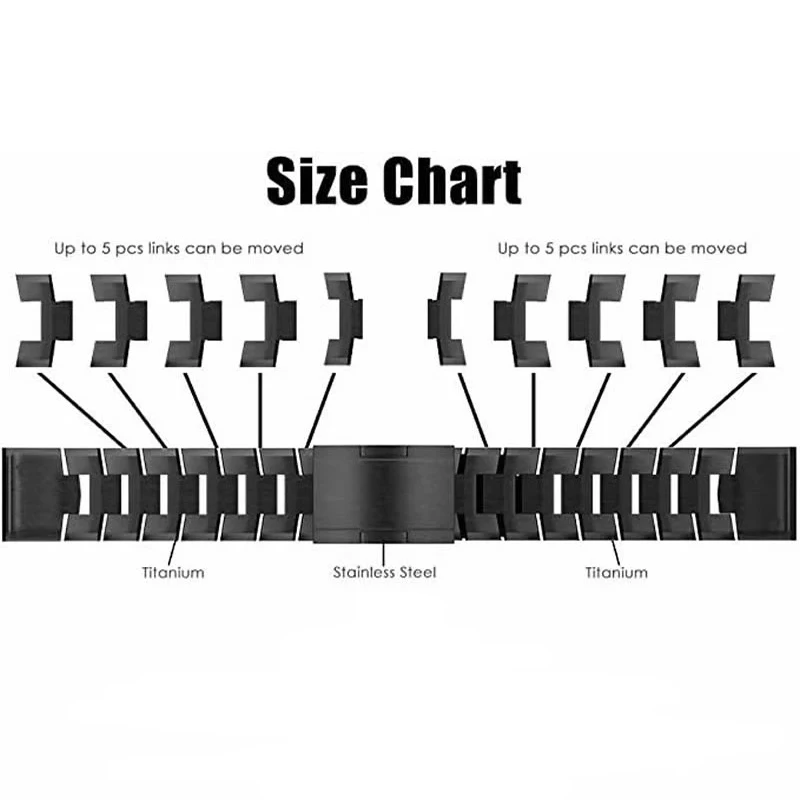 Плотность титанового сплава составляет всего 60% от плотности стали, это означает, что этот ремешок часов будет легче, чем стальные полосы одного размера. Наш ремешок из титанового сплава 22 мм продемонстрирует высокую прочность, хорошую жесткость и весовой светильник. Вам понравится. Только застежка была сделана из нержавеющей стали, так как титановый материал не является лучшим материалом для системы cluusre.