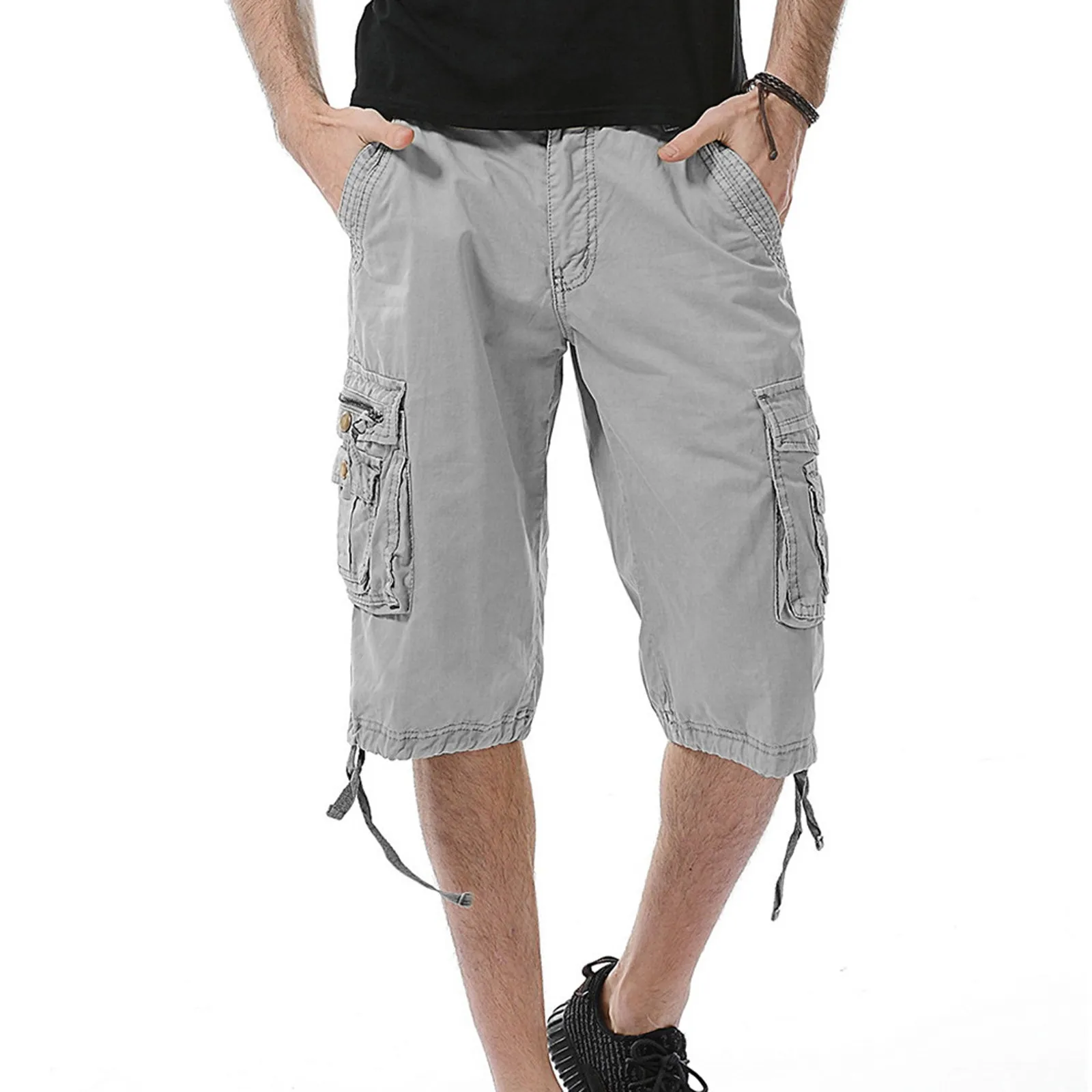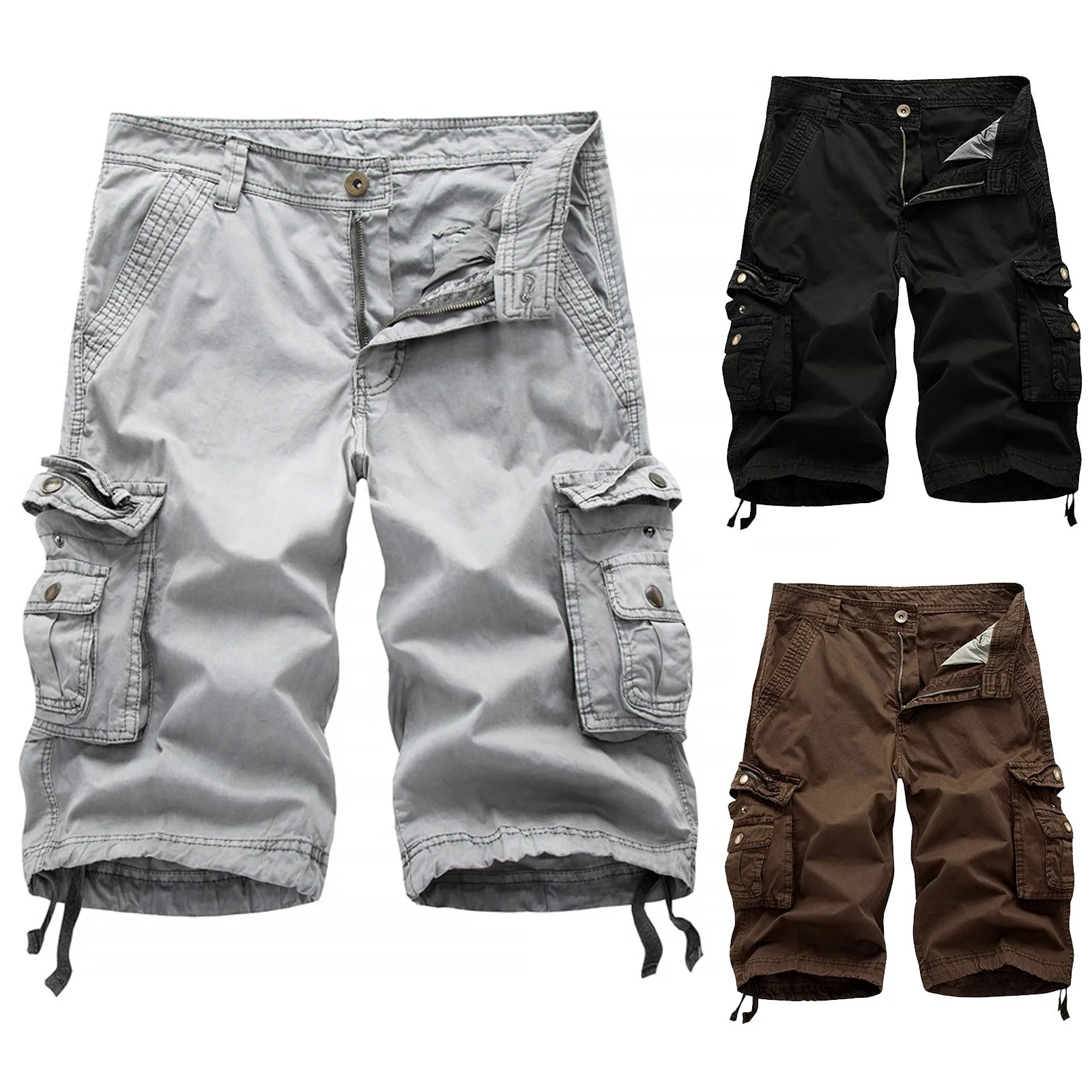 Шорты-карго мужские однотонные, повседневные пляжные штаны с карманами, свободные штаны для работы, Прямая поставка