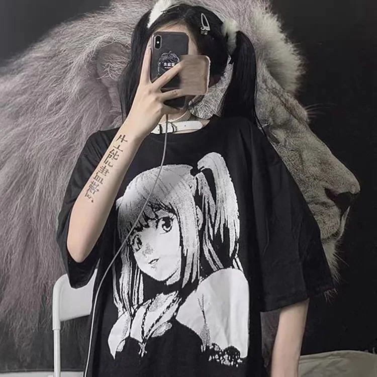 Черные футболки для девочек, забавная уличная одежда, Свободный Летний Повседневный Топ в стиле Харадзюку, аниме Death Note, Миса, косплей, свободный свитер, наряд