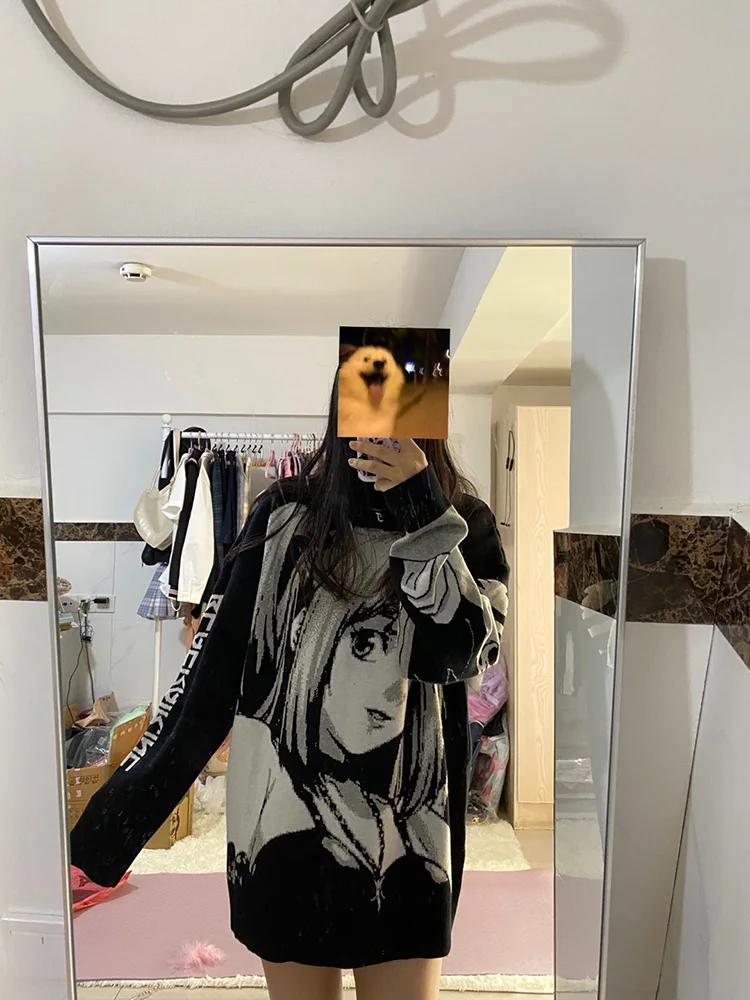 Трикотажный свободный свитер в японском стиле с аниме для девочек, ...