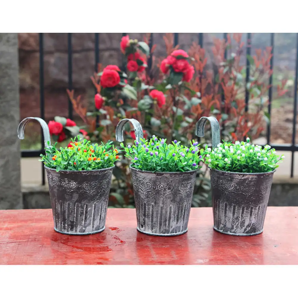 Винтажный металлический Металлический горшок для цветов, подвесной горшок для балкона, садовый горшок для растений, декоративный горшок, потертый подарок, ваза для цветов, домашний декор