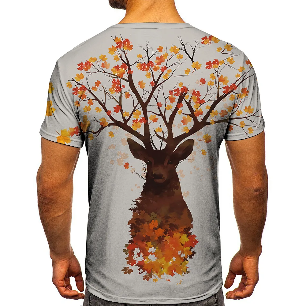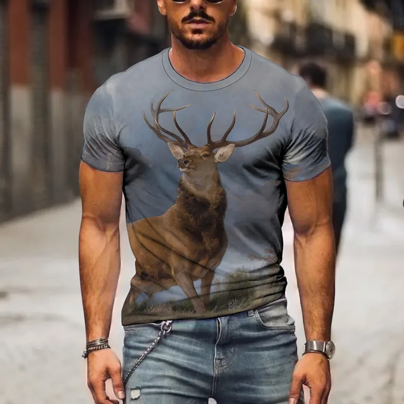 Футболка мужская с 3D-принтом акулы и оленя, модная тенниска с коротким рукавом, повседневная майка в стиле хип-хоп, майка большого размера, лето