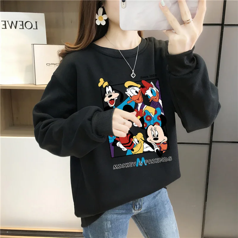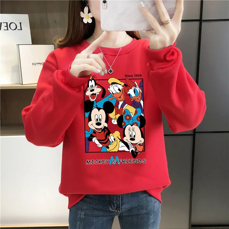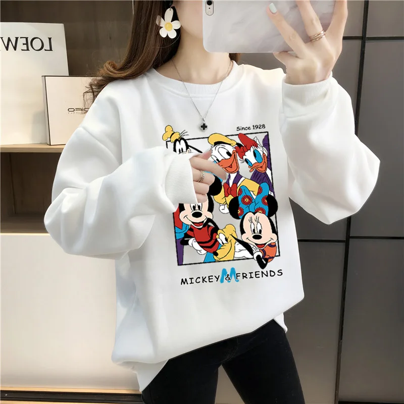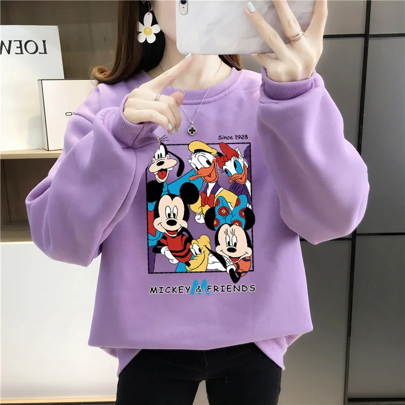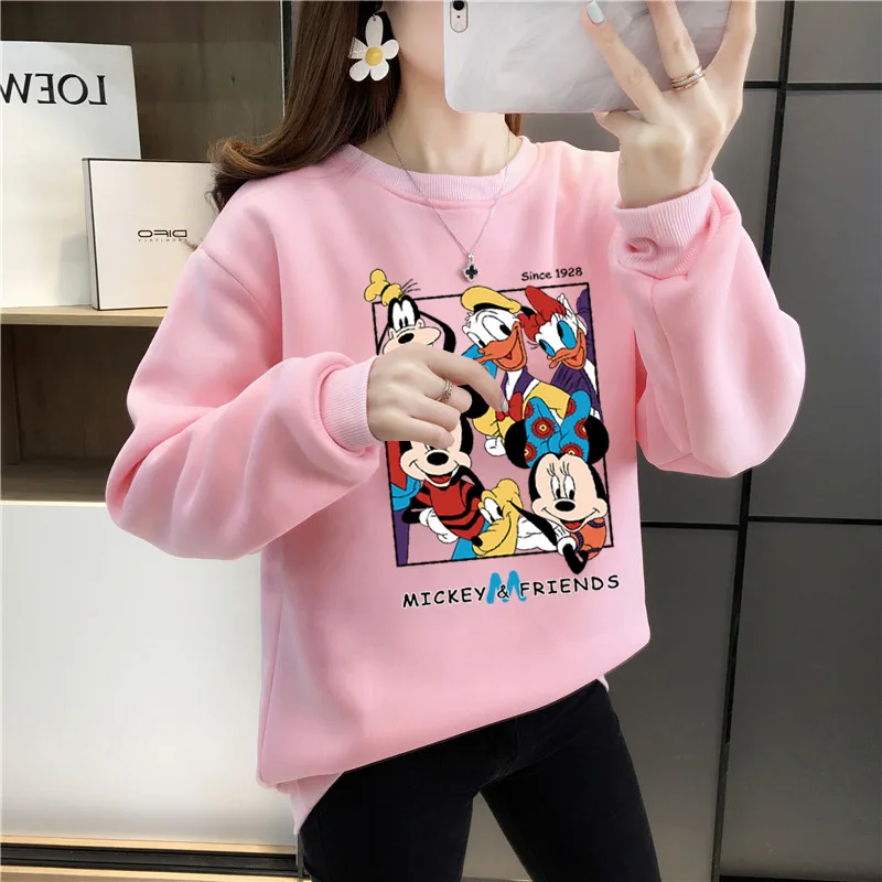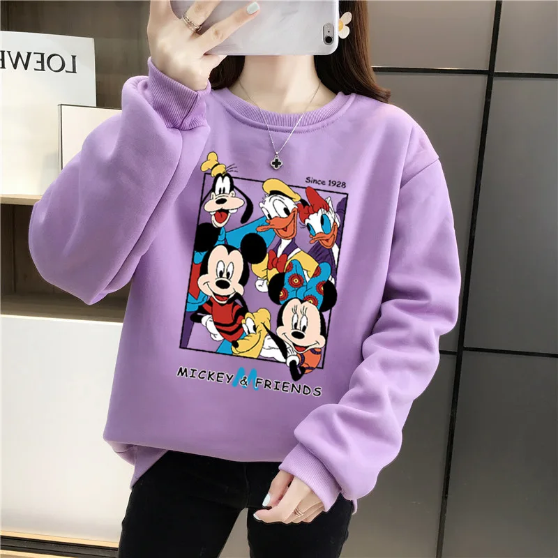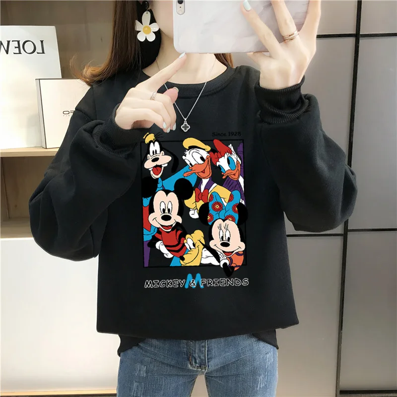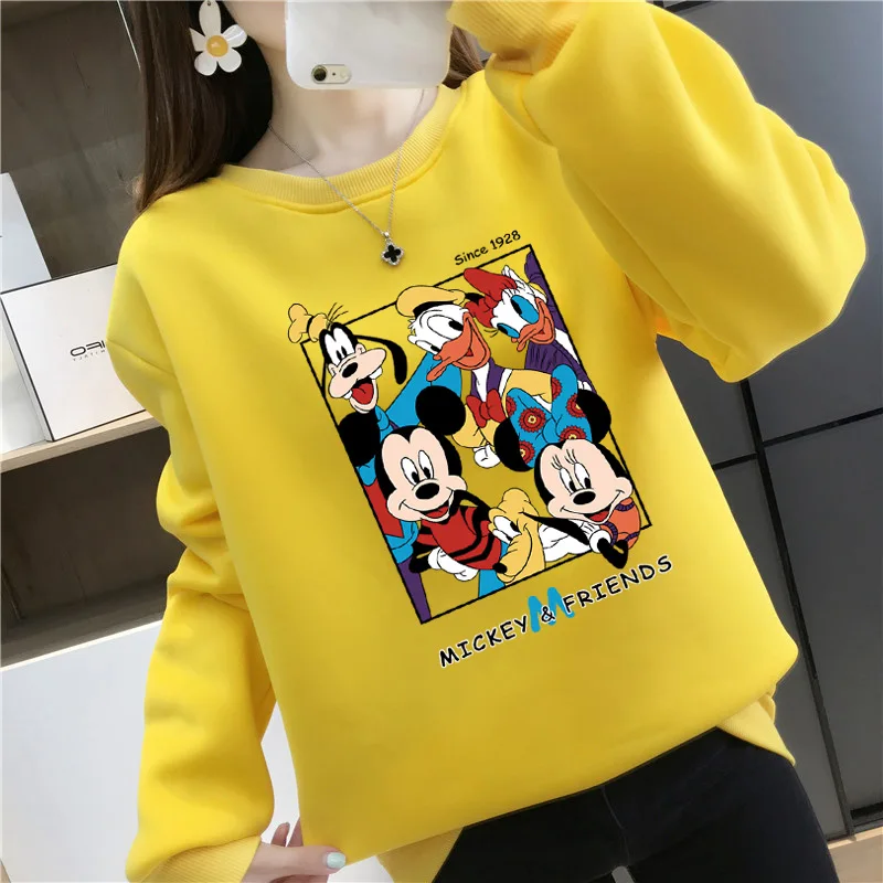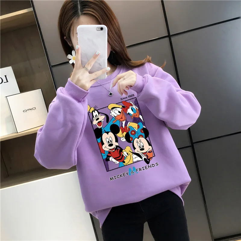 Новые модные толстовки с героями мультфильма Диснея, Микки и Минни Маус с друзьями, женские толстовки с круглым вырезом и длинным рукавом, Casacos Femininos Inverno 2021