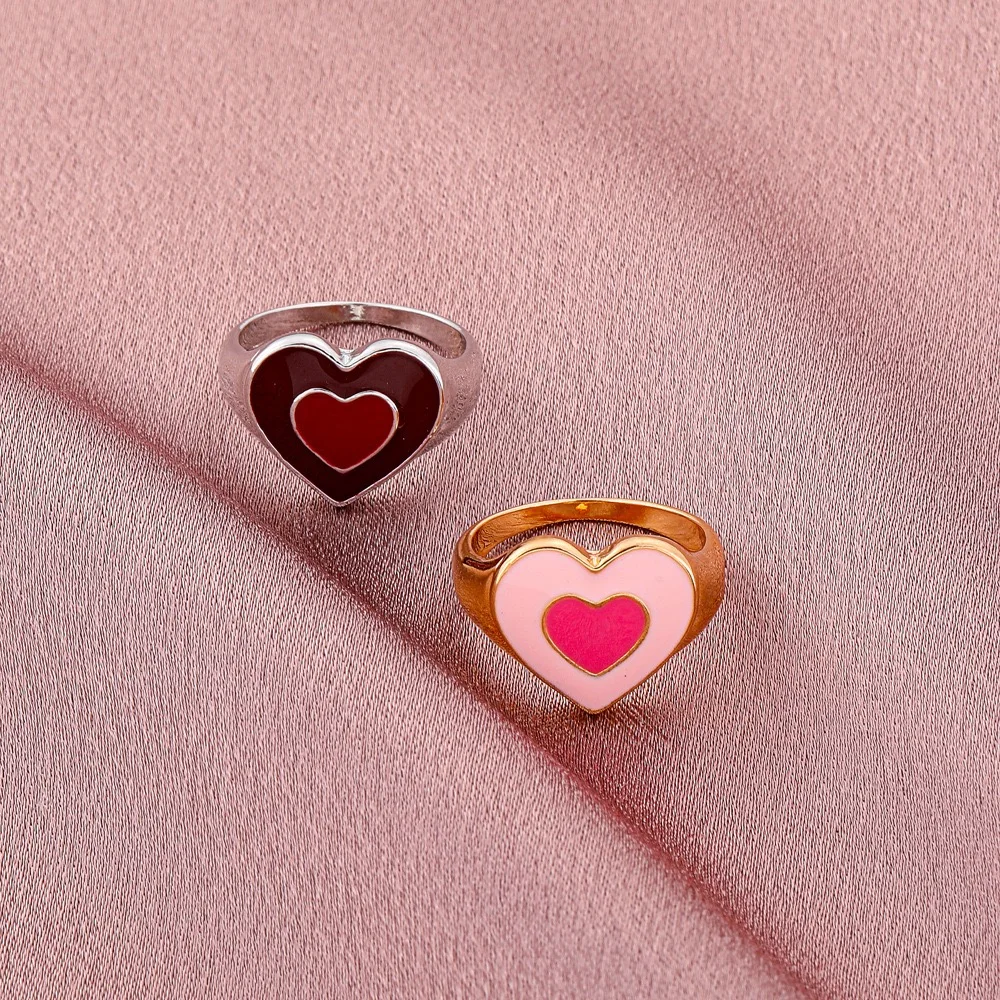 7 колец в стиле Instagram в винтажном стиле, хит продаж, Двухслойное милое красочное кольцо с сердечком для женщин и девочек, ювелирные аксессуары, подарок