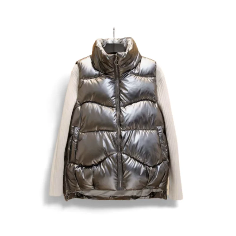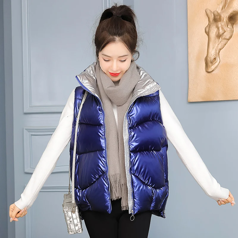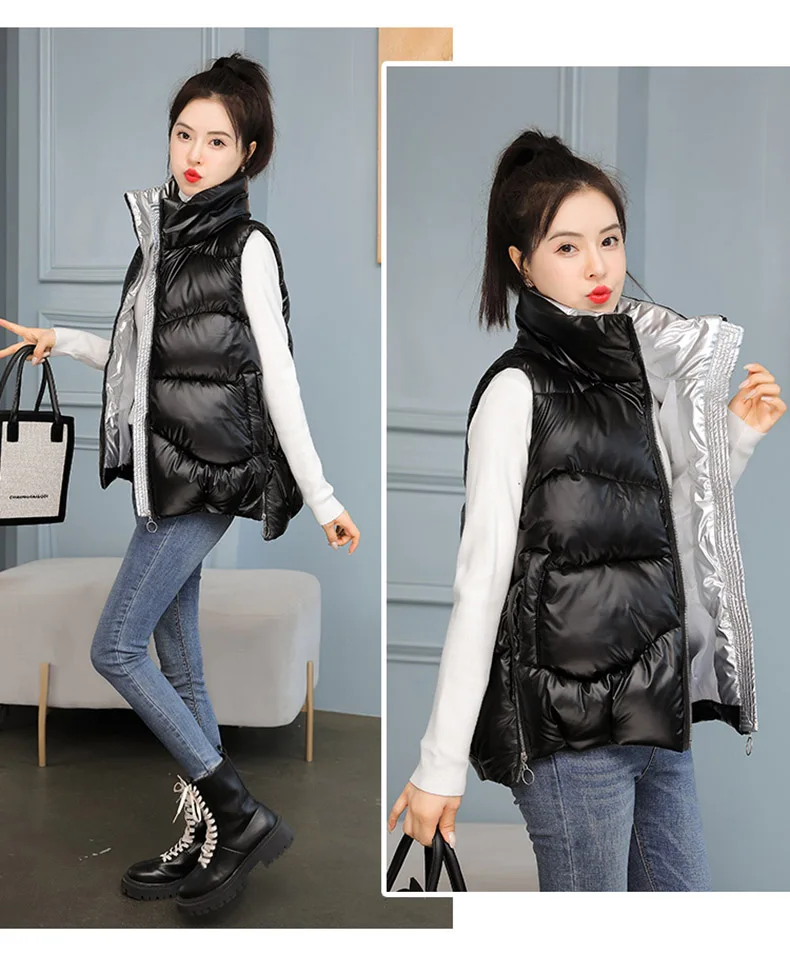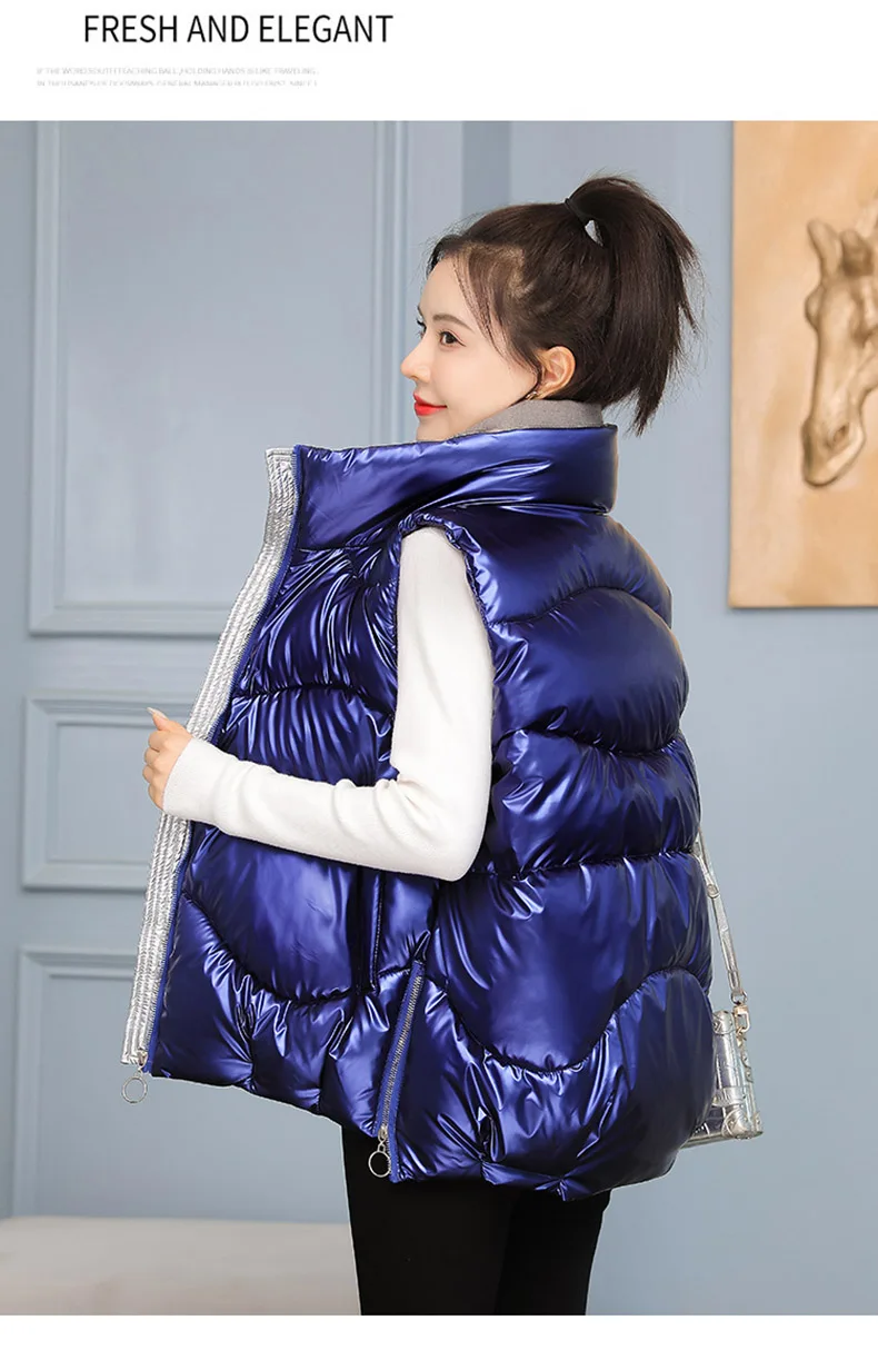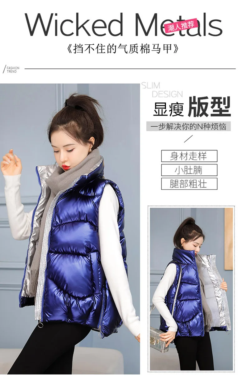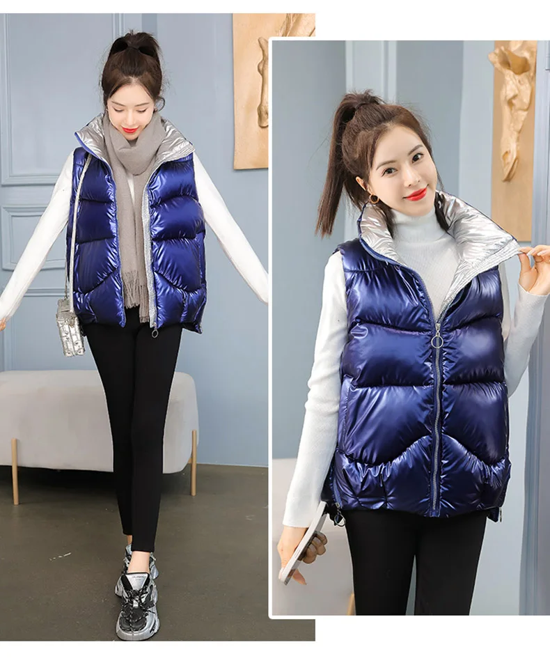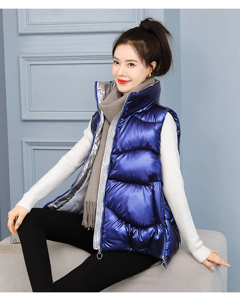 Женская осенне-зимняя однотонная одежда 2021, Модный глянцевый тонкий хлопковый жилет на молнии в Корейском стиле