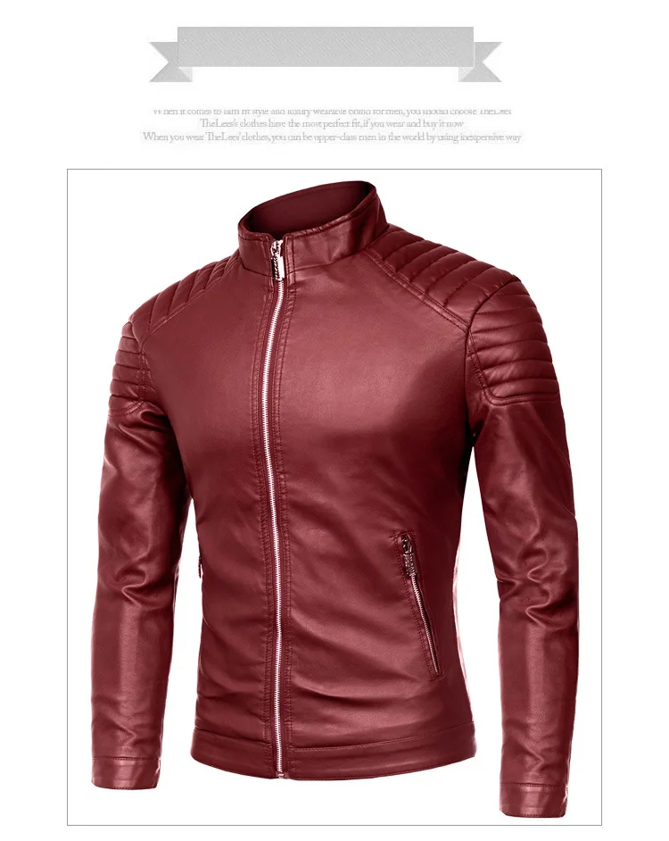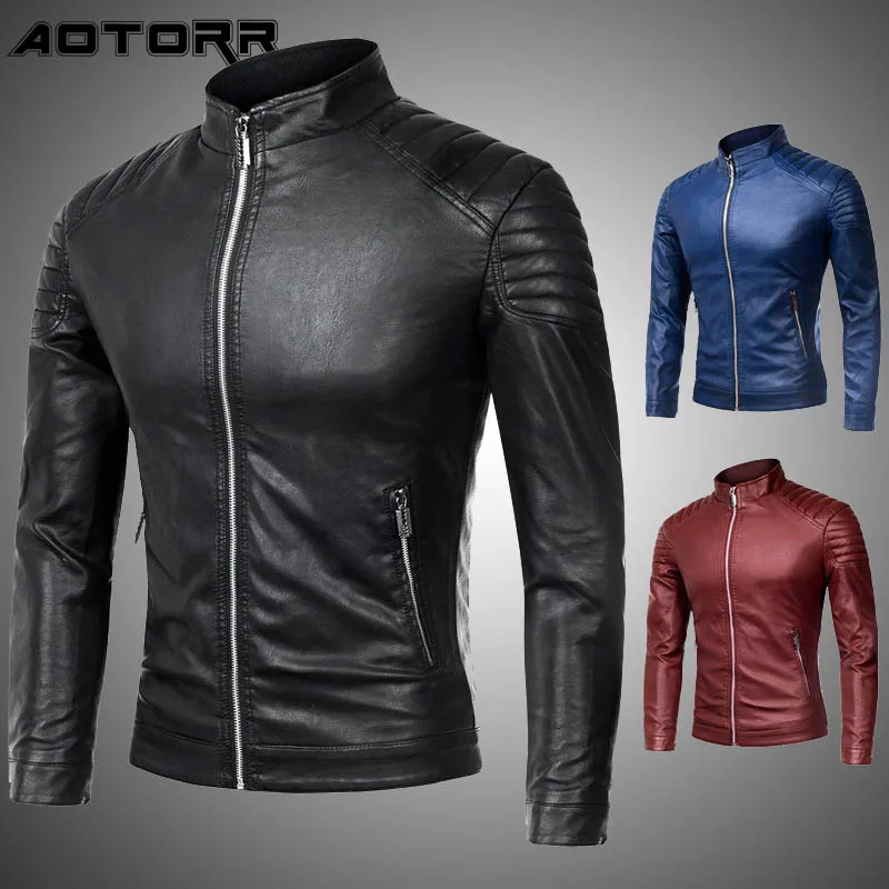 Мужская куртка из искусственной кожи, простая мотоциклетная куртка ...