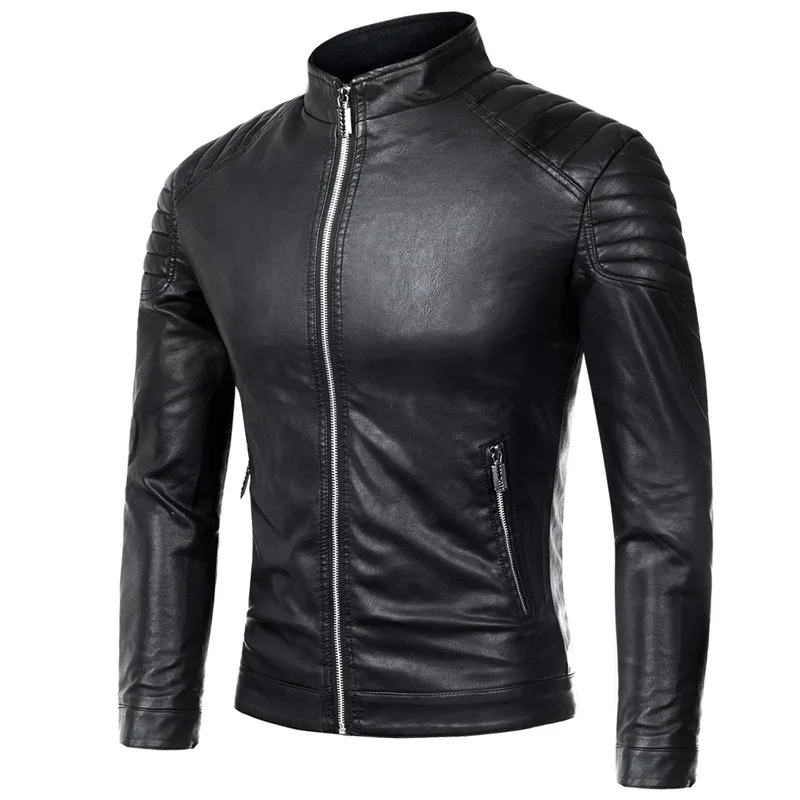 Куртка мужская Байкерская из искусственной кожи, с воротником-стойкой