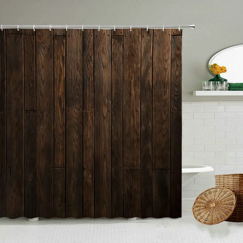 Занавеска для душа в стиле ретро, с геометрическим рисунком, для деревянной двери, для загородного дома, сарая, для украшения ванной комнаты, водонепроницаемый экран