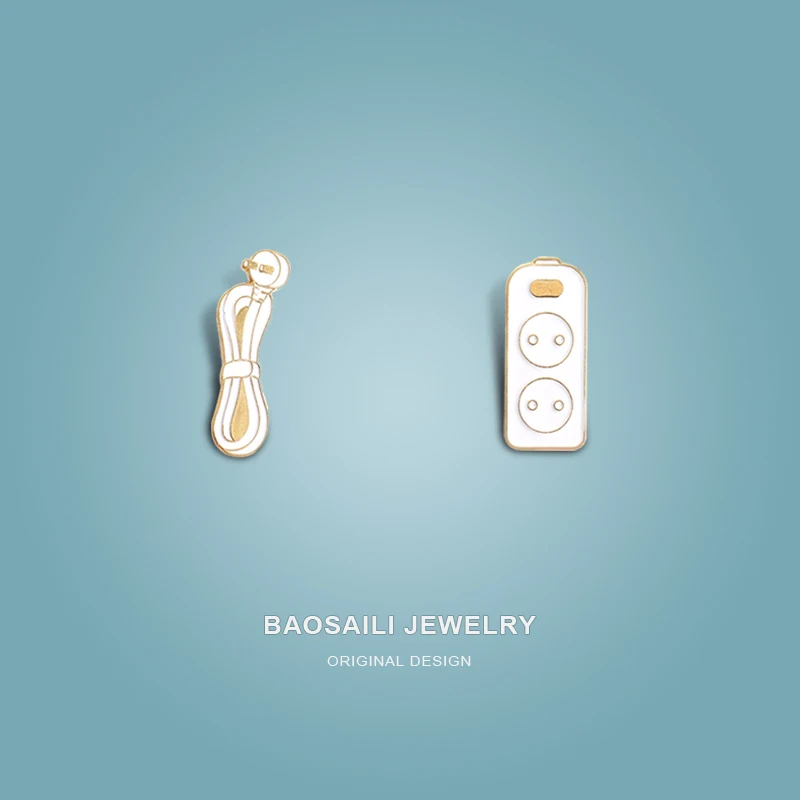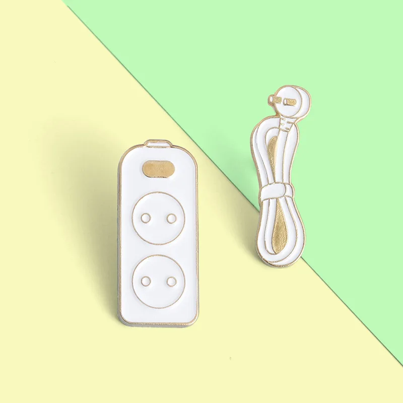 Креативная брошь из металлического сплава в форме разъема с белой р...