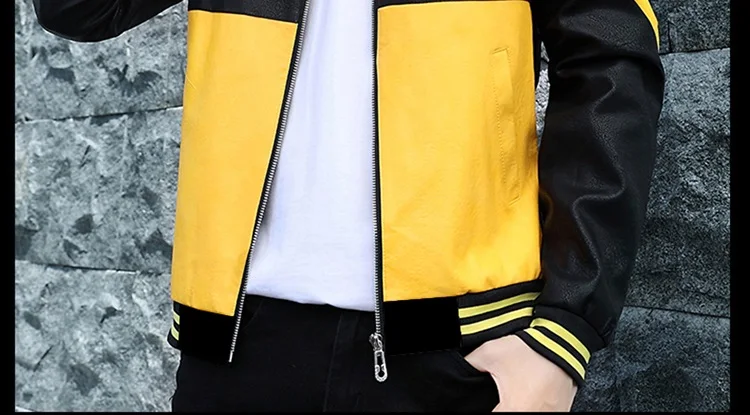 Мужская мотоциклетная кожаная куртка, осенняя бейсбольная куртка, М...