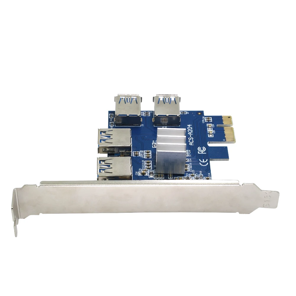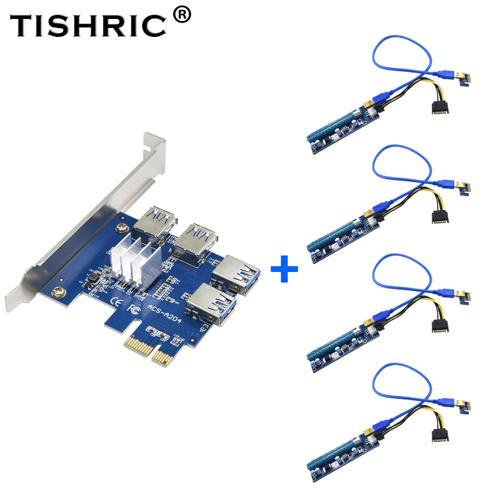 TISHRIC 1 поворот 4 PCI-Express слот 1x к 16x Riser Card PCI-E к PCI-E адаптер USB 3,0 PCIe конвертер PCI-E для BTC Miner Mining