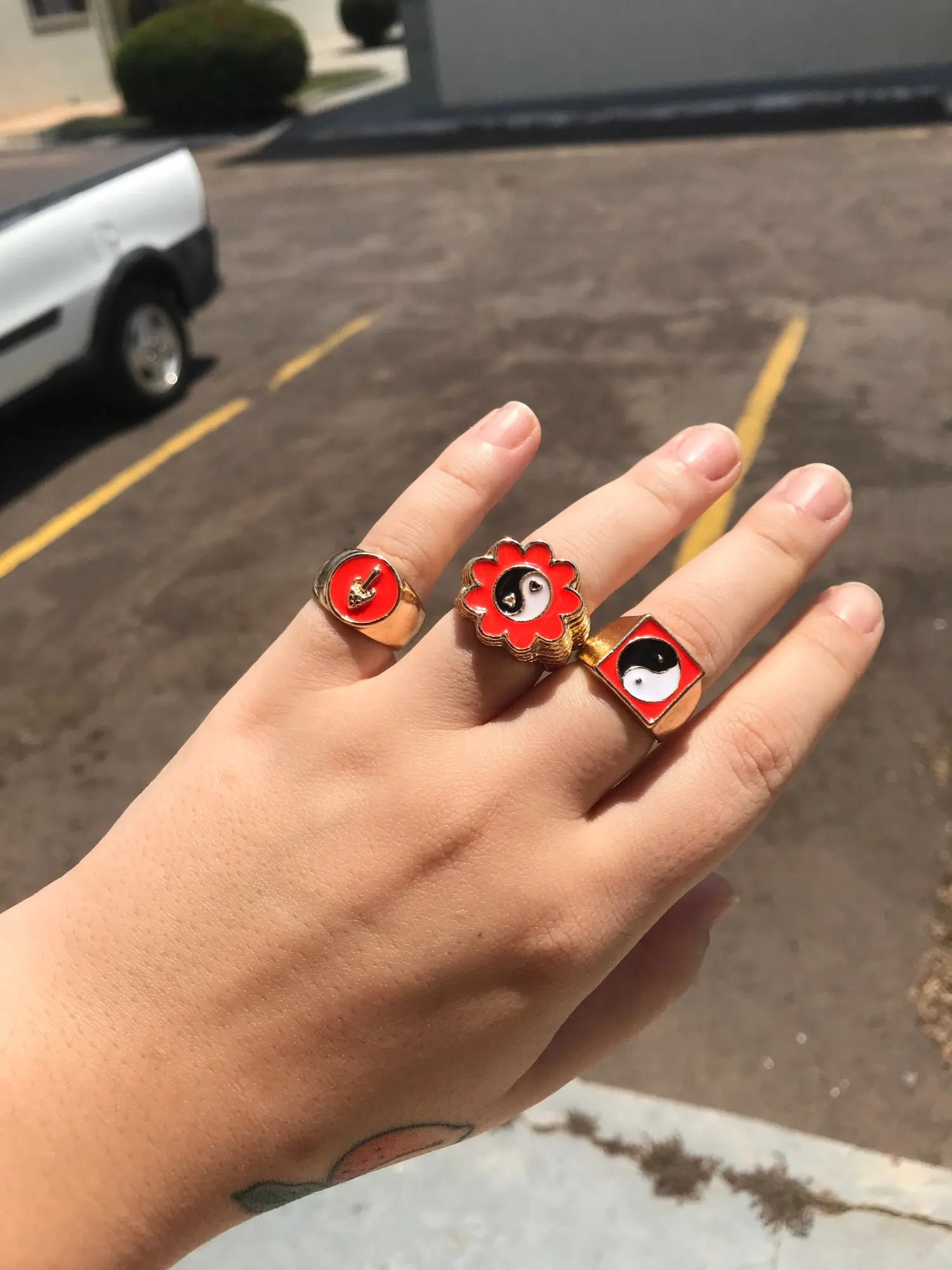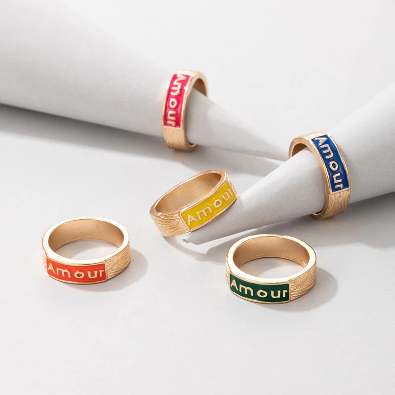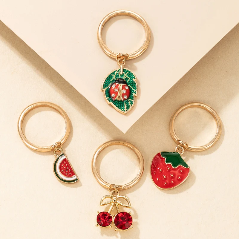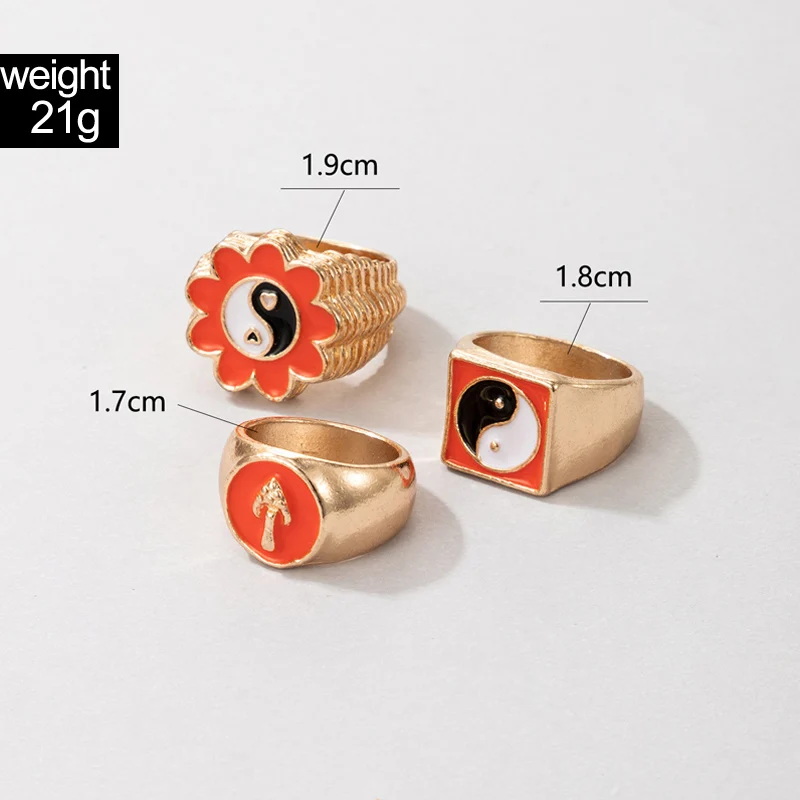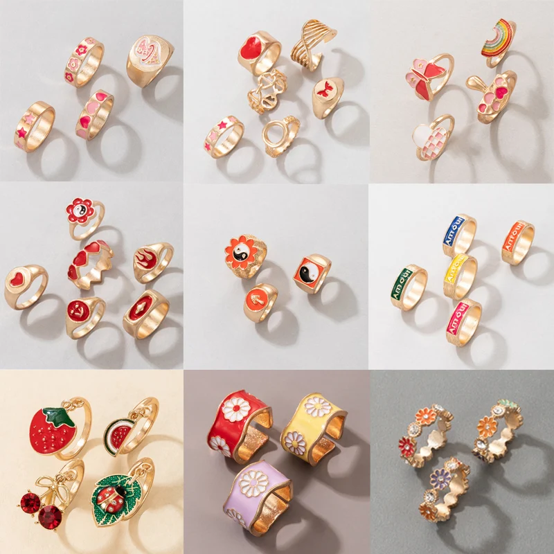 Tocona красочные капающие масла Тай Чи бабочка золотые кольца наборы для женщин Милое сердце цветы фрукты геометрическое свадебное кольцо ювелирные изделия