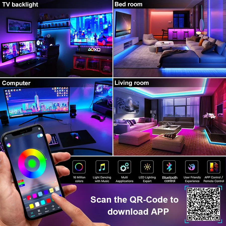 Светодиодная лента 5050 RGB с поддержкой Bluetooth, 5-30 м