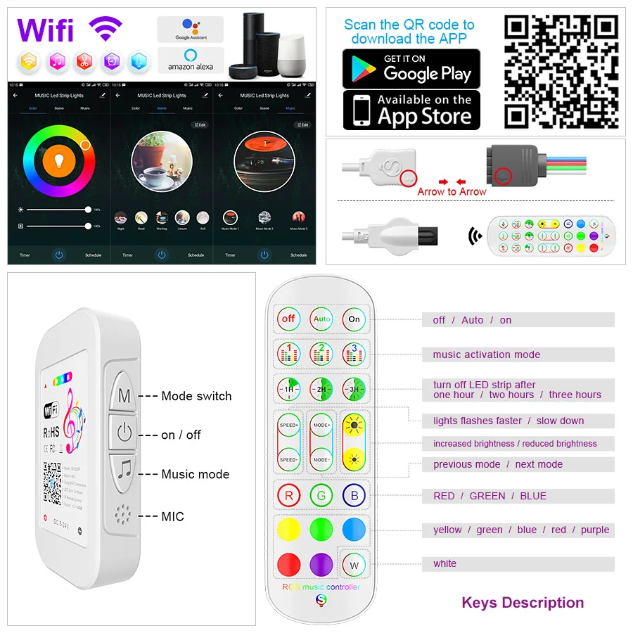 Светодиодная RGB-ленсветильник с поддержкой Wi-Fi, 12 В, Bluetooth ...