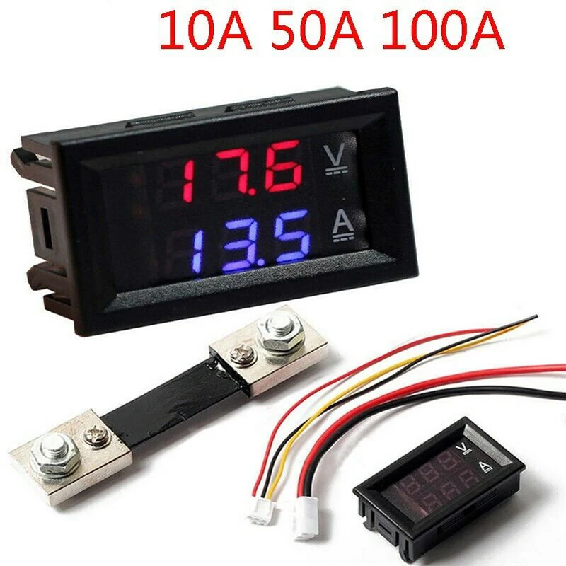 Цифровой вольтметр, амперметр постоянного тока 4-30 в с двойным дисплеем, 100 В, 50 А