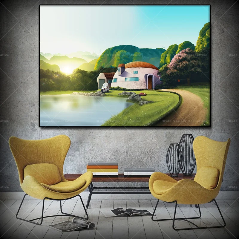 Драконий жемчуг Goku Kame House Украшение на стену, живопись маслом, пейзаж, постер, холст, живопись, гостиная спальня, украшение