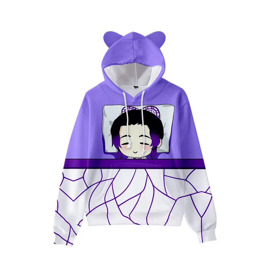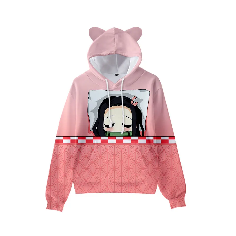 Детская толстовка с капюшоном, кошачьи уши, 3D комикс Demon Slayer,...