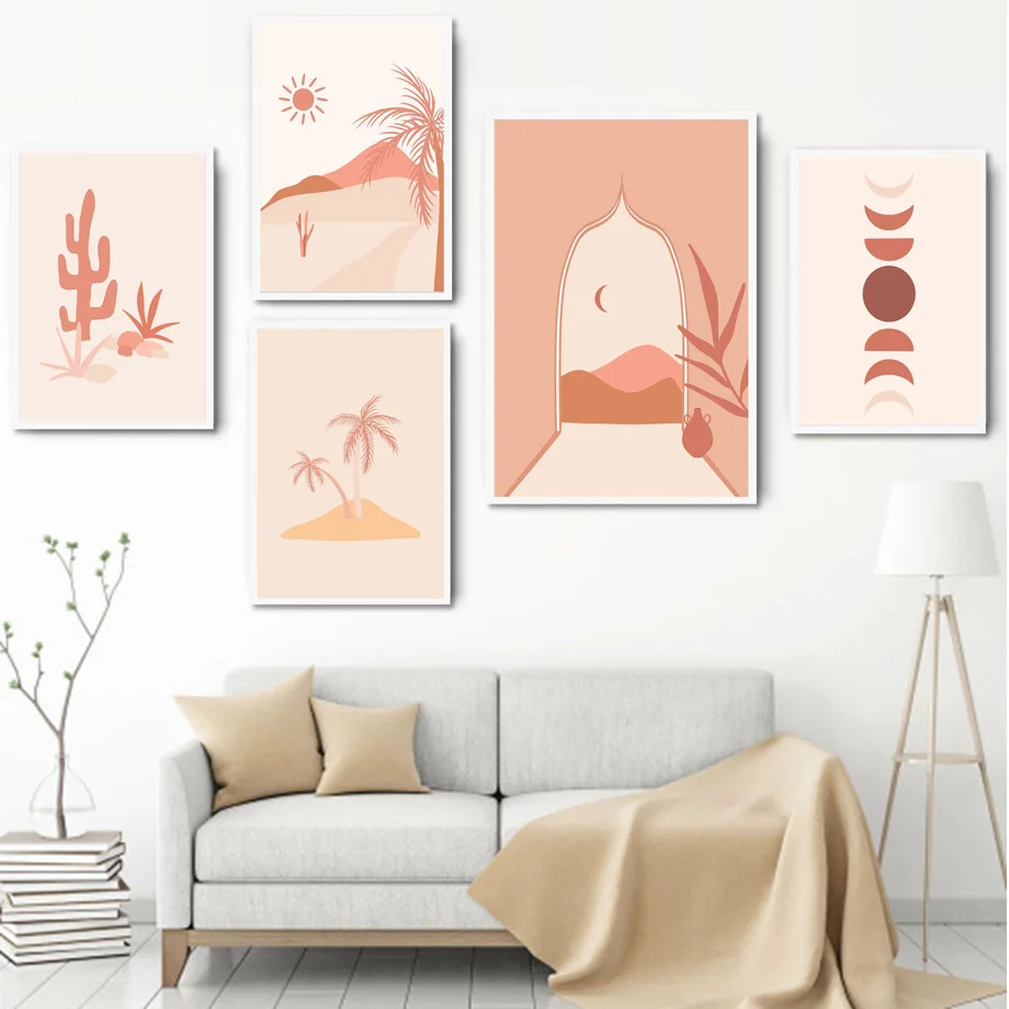 Desert Cactus кокосовое дерево абстрактная настенная Картина на холсте скандинавские постеры и принты настенные картины для гостиной Бохо Декор
