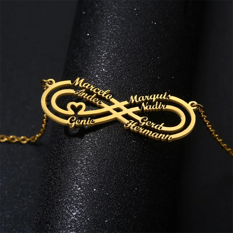 Индивидуальное ожерелье с именем бесконечности, ожерелья из нержавеющей стали с персонализированным сердцем, бесконечность 1-7, ожерелья на заказ с буквой, подарок для семьи
