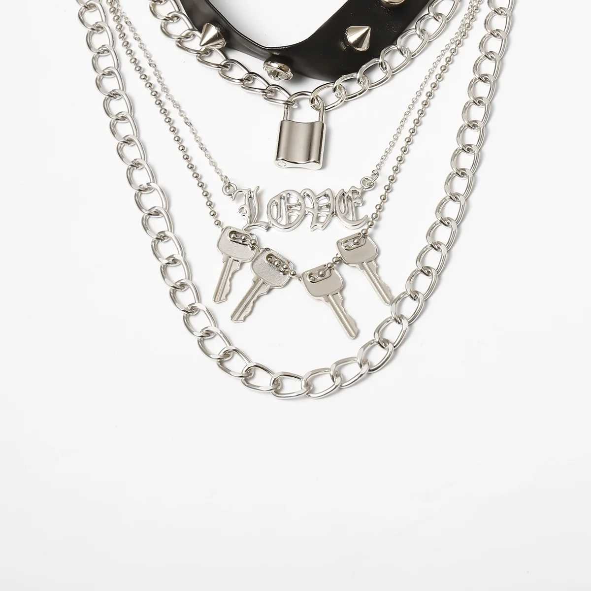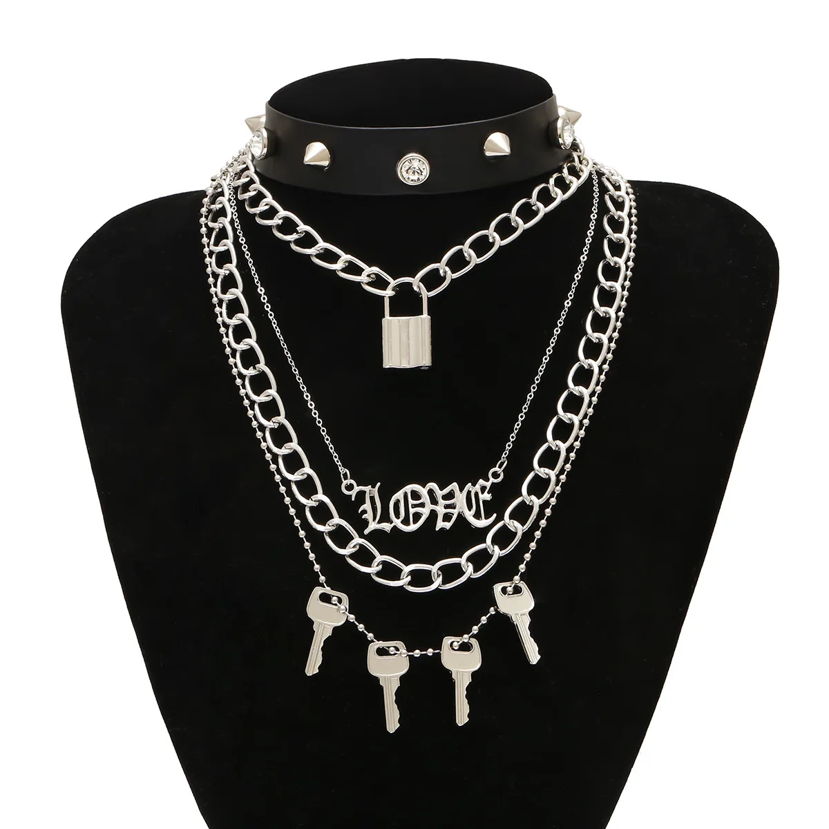 Женское Ожерелье-чокер из искусственной кожи, в стиле Харадзюку, эмо, с шипами в виде гот, хип-хоп, металлическая цепочка с любовным замком, подвеска, ожерелье, украшение на Хэллоуин